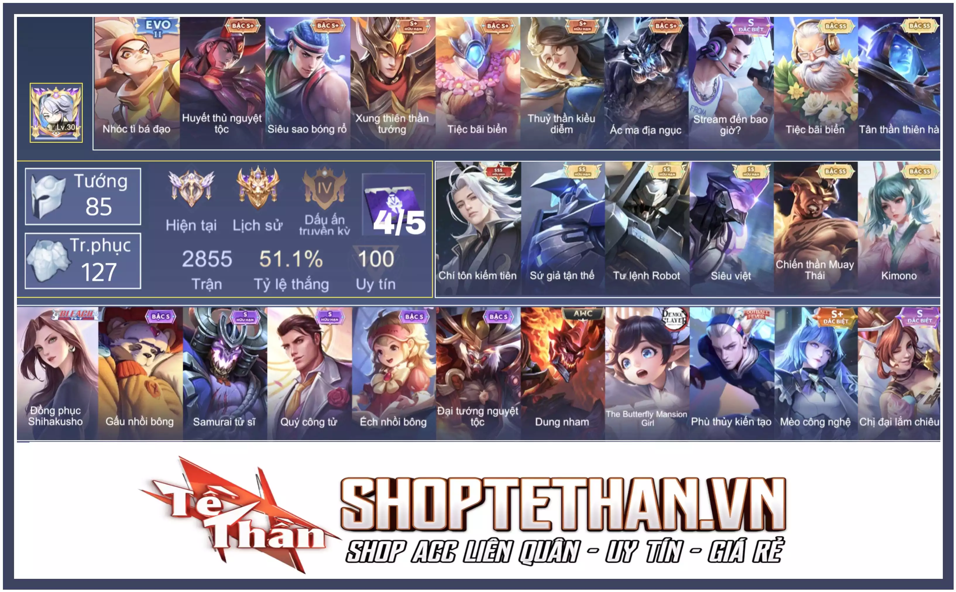 Loại acc | MUA ACC LIÊN QUÂN VIP: SKIN SSS, ANIME, CỤC VÀNG, MÁC THÁCH ĐẤU |