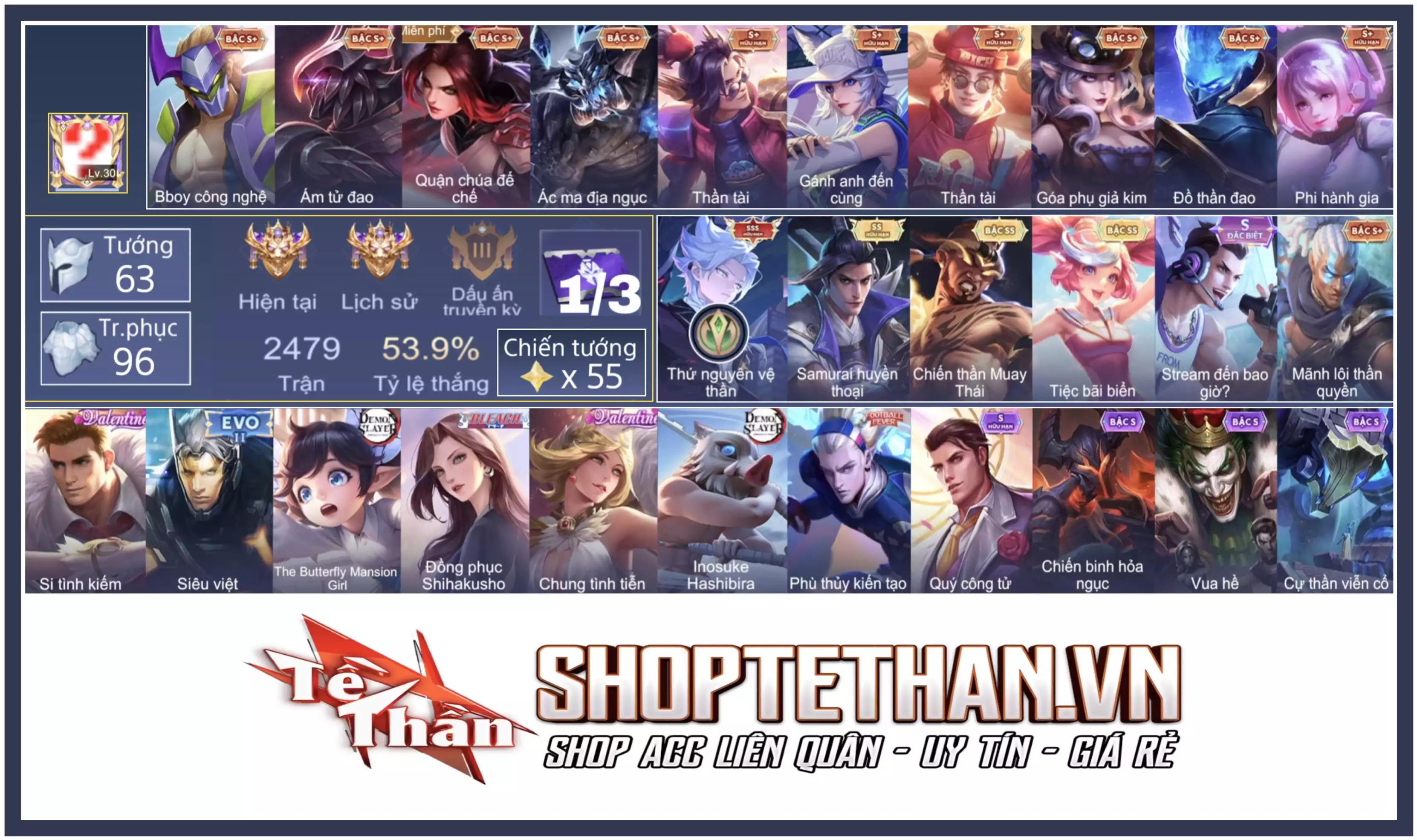 Loại acc | MUA ACC LIÊN QUÂN VIP: SKIN SSS, ANIME, CỤC VÀNG, MÁC THÁCH ĐẤU |
