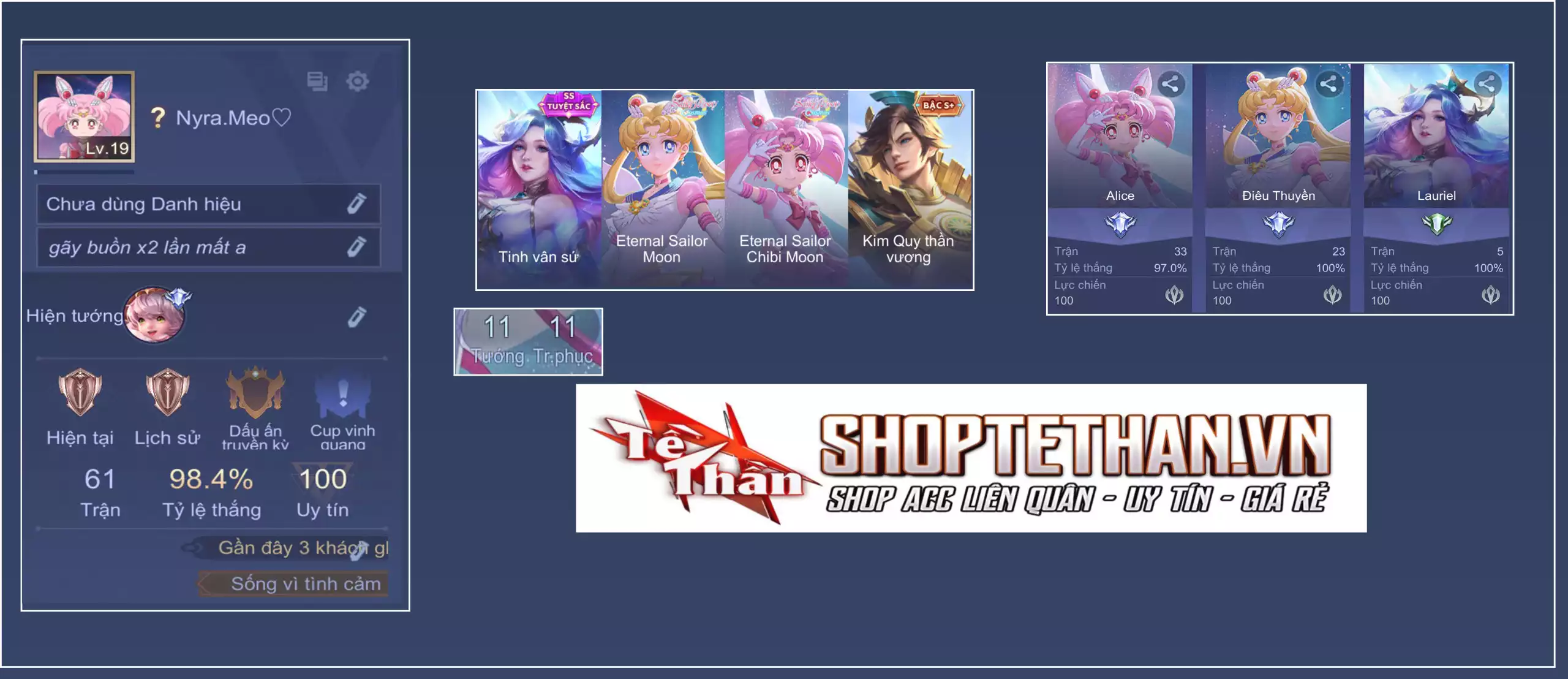 MUA ACC LIÊN QUÂN REG VIP, TRẮNG THÔNG TIN (NHIỀU SKIN, ANIME, SSS)