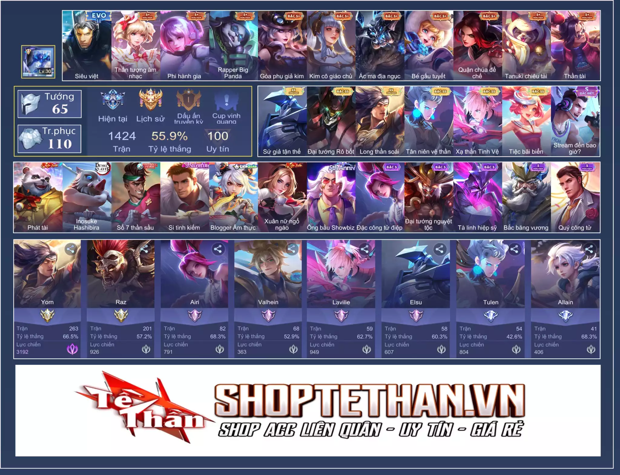 | Loại acc | MUA ACC LIÊN QUÂN GIÁ RẺ, NHIỀU SKIN S+, SS, SSHH. TỰ ĐỘNG | AN TOÀN | BẢO MẬT | UY TÍN |
