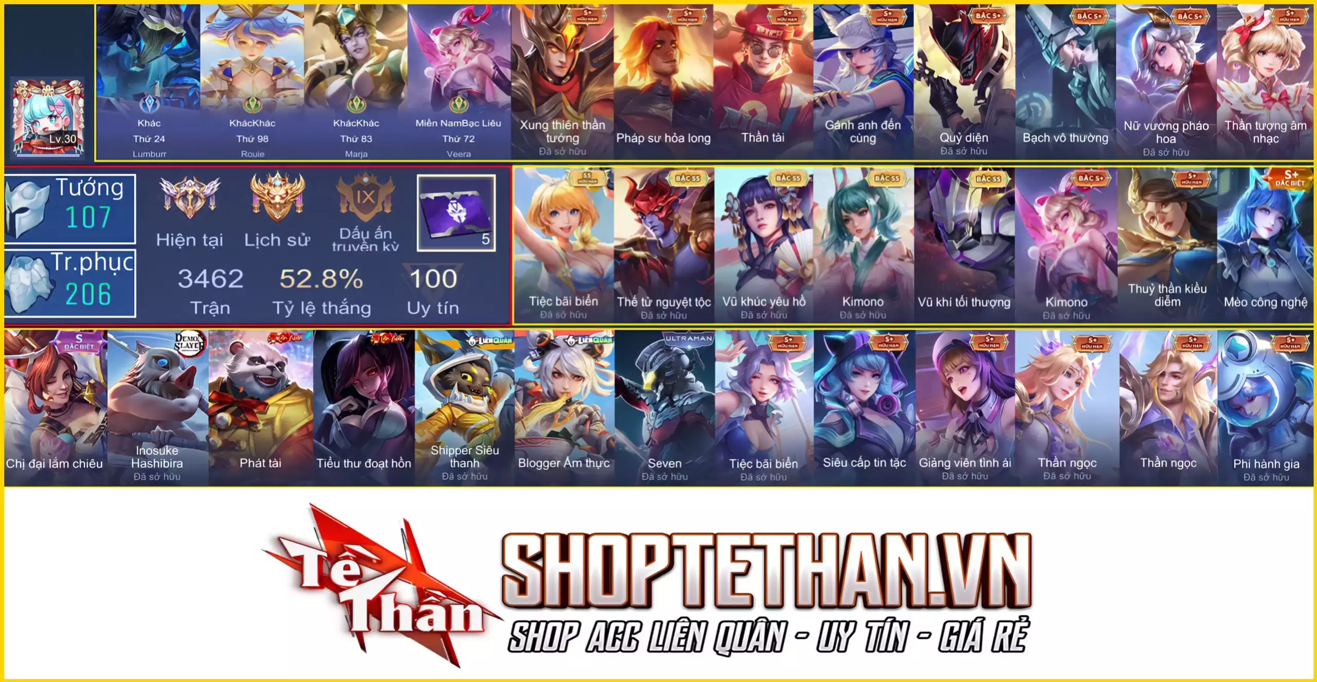 Loại acc | MUA ACC LIÊN QUÂN VIP: SKIN SSS, ANIME, CỤC VÀNG, MÁC THÁCH ĐẤU |