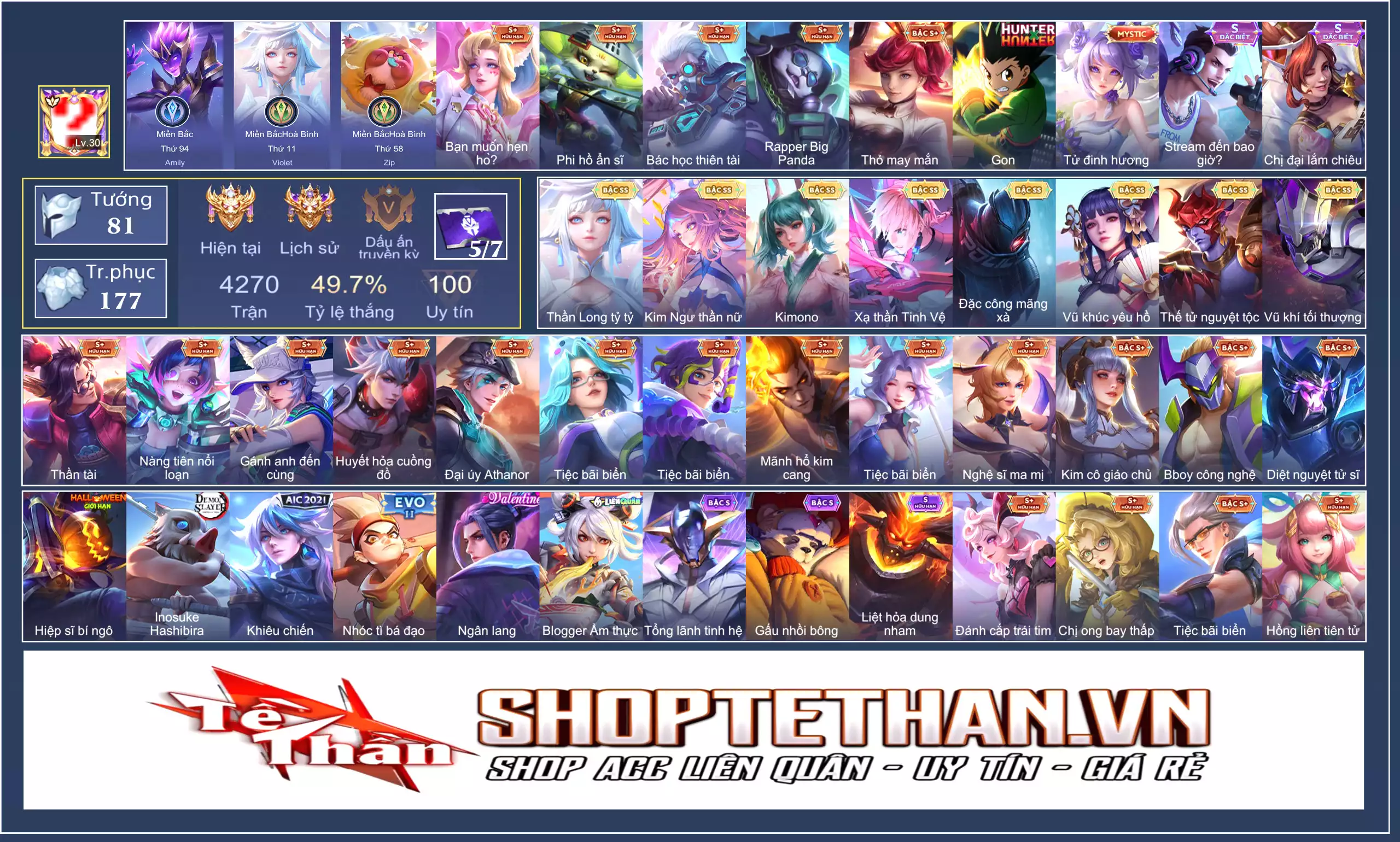 | Loại acc | MUA ACC LIÊN QUÂN GIÁ RẺ, NHIỀU SKIN S+, SS, SSHH. TỰ ĐỘNG | AN TOÀN | BẢO MẬT | UY TÍN |