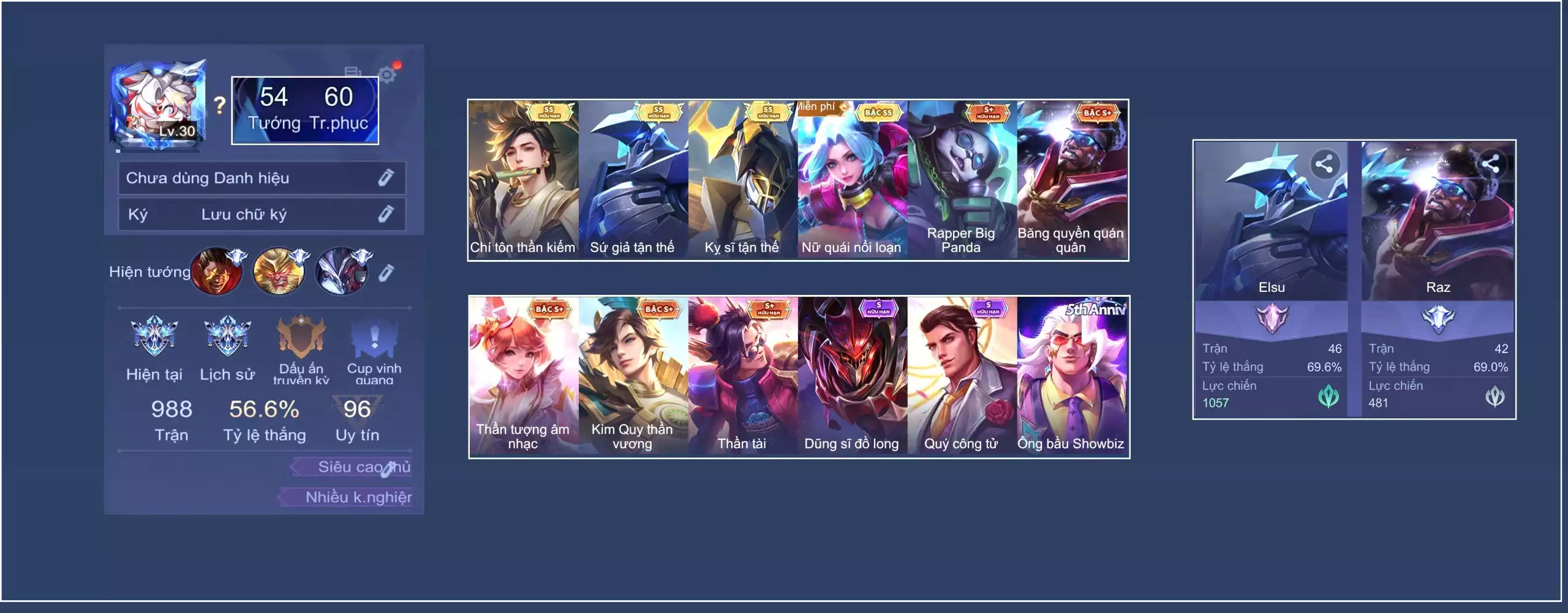 Acc #18350: Mur chí tôn, elsu sgtt, triệu vân kstt, but nổi loạn, raz băng quyền ... Mỗi SĐT, giá 700,000 đ