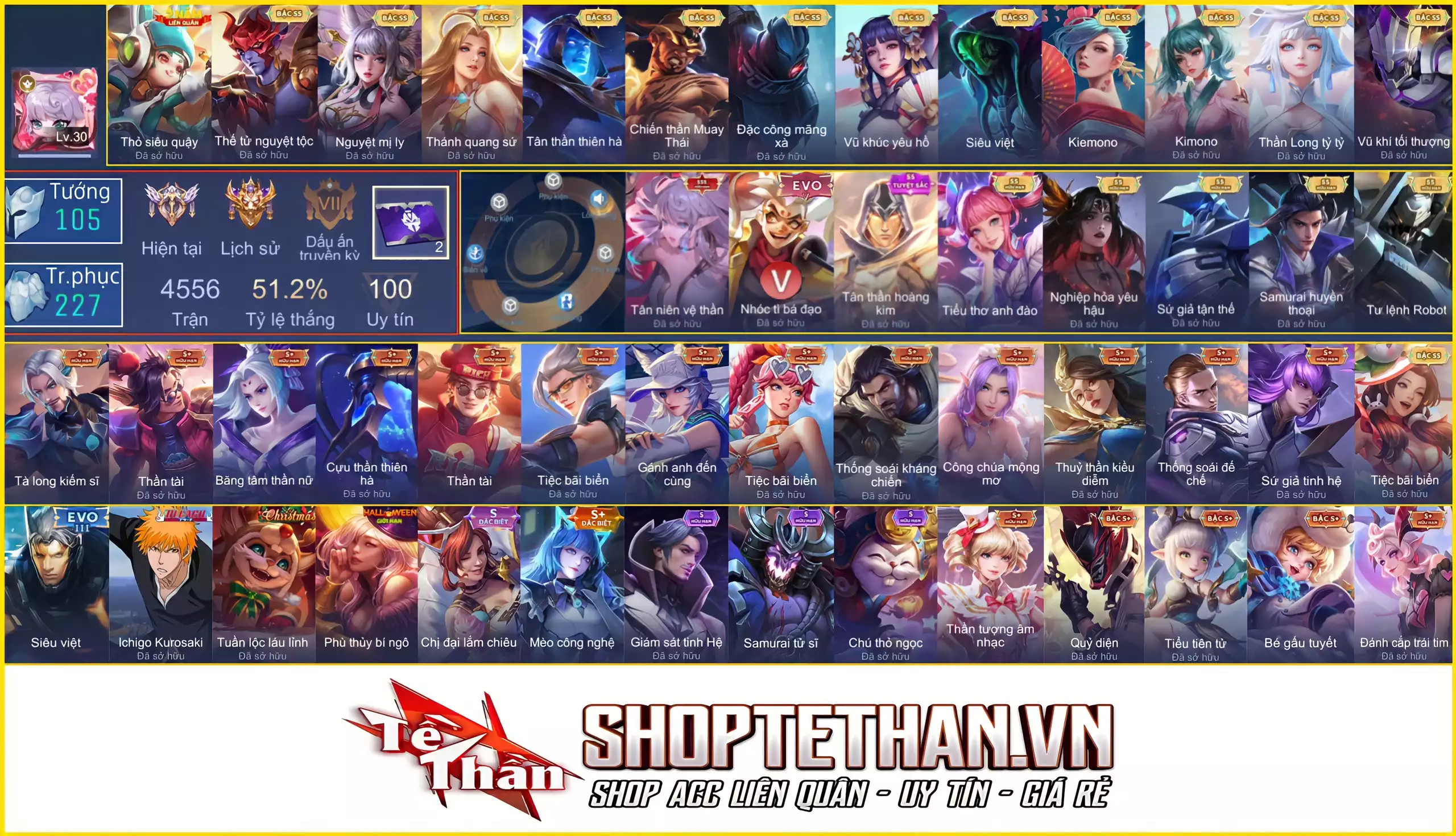 Loại acc MUA ACC LIÊN QUÂN VIP: SKIN SSS, ANIME, CỤC VÀNG, MÁC THÁCH ĐẤU