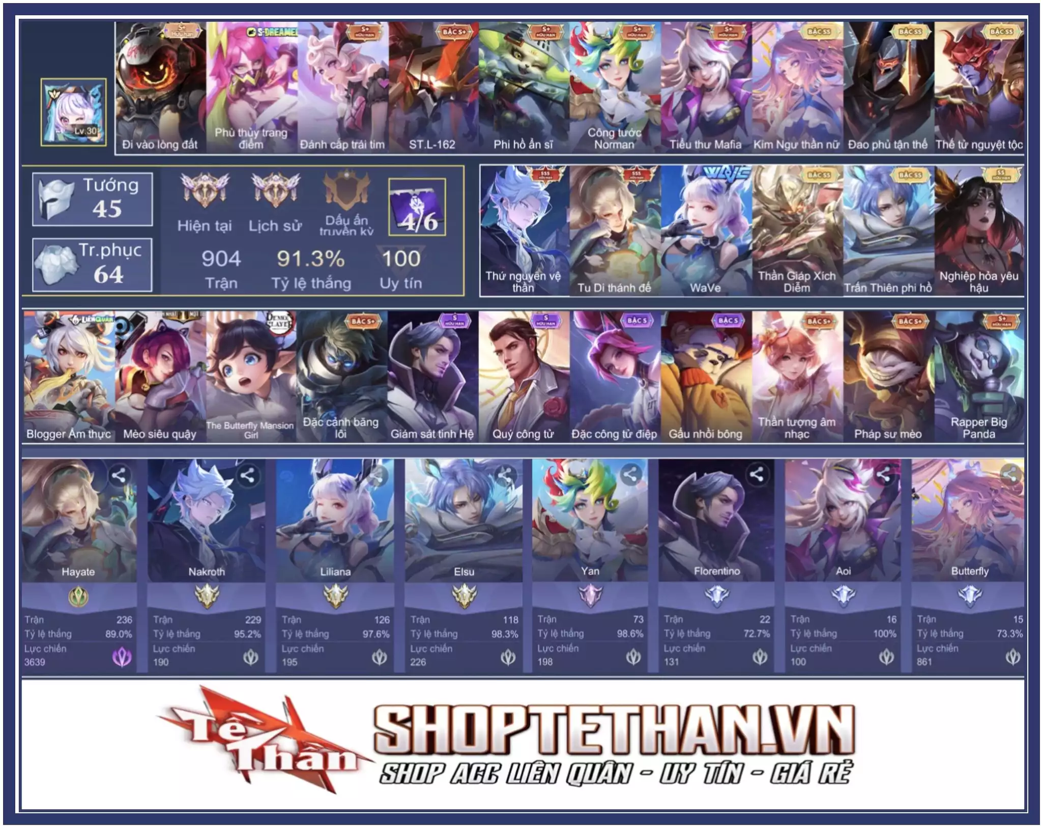 Loại acc | MUA ACC LIÊN QUÂN VIP: SKIN SSS, ANIME, CỤC VÀNG, MÁC THÁCH ĐẤU |