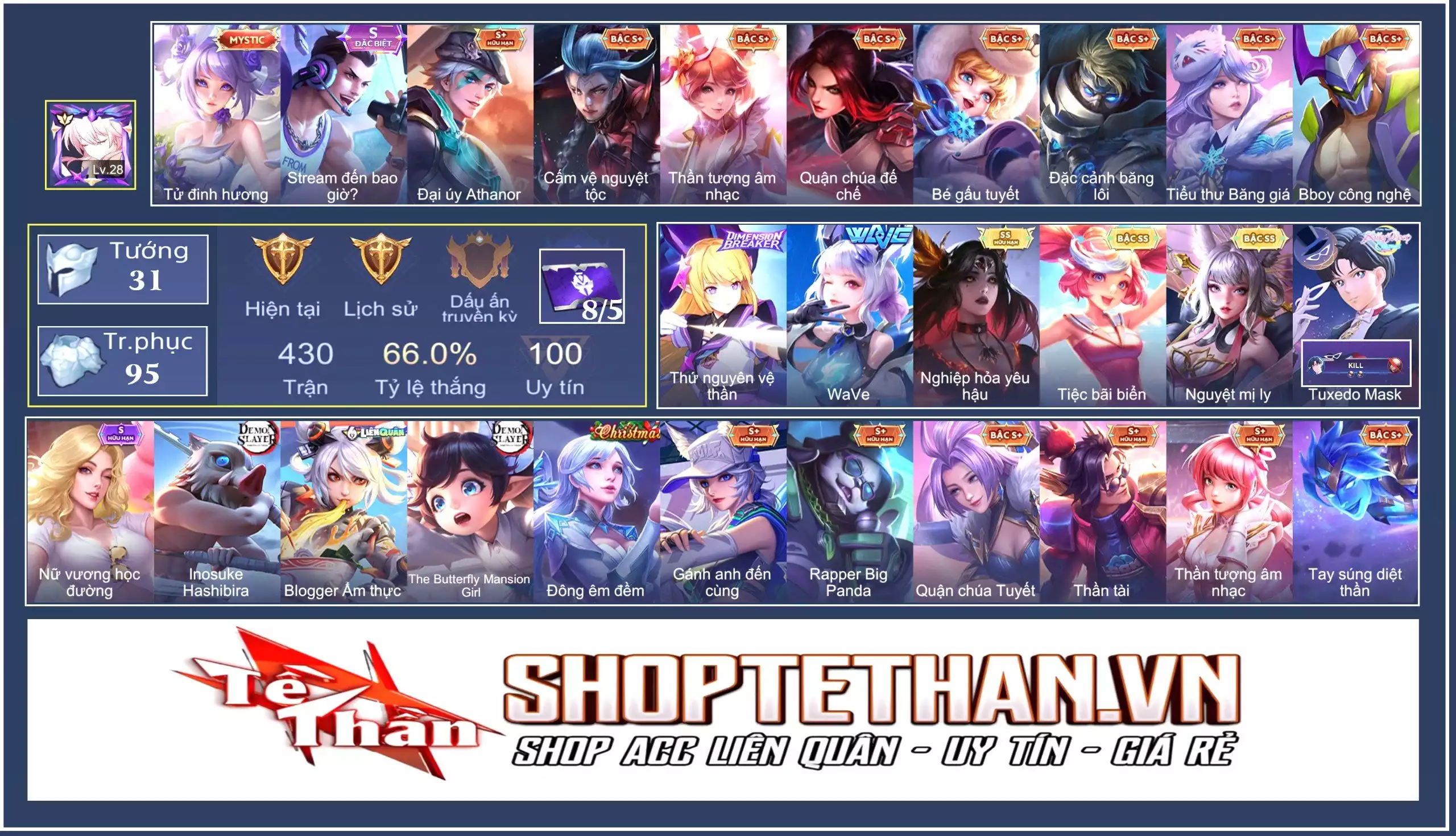 Loại acc | MUA ACC LIÊN QUÂN VIP: SKIN SSS, ANIME, CỤC VÀNG, MÁC THÁCH ĐẤU |