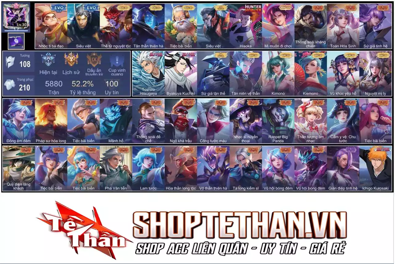 Loại acc | MUA ACC LIÊN QUÂN VIP: SKIN SSS, ANIME, CỤC VÀNG, MÁC THÁCH ĐẤU |