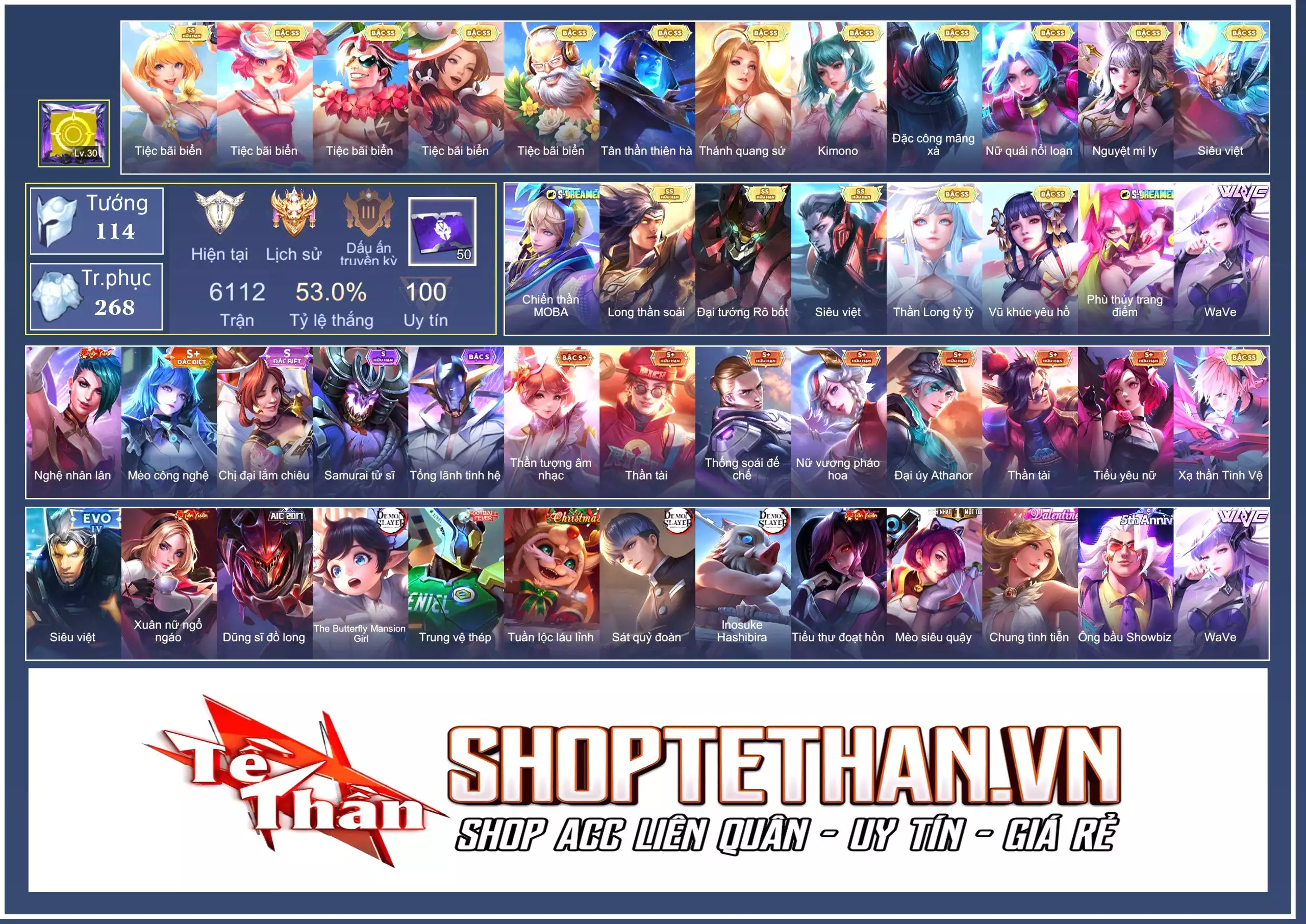 Loại acc | MUA ACC LIÊN QUÂN VIP: SKIN SSS, ANIME, CỤC VÀNG, MÁC THÁCH ĐẤU |