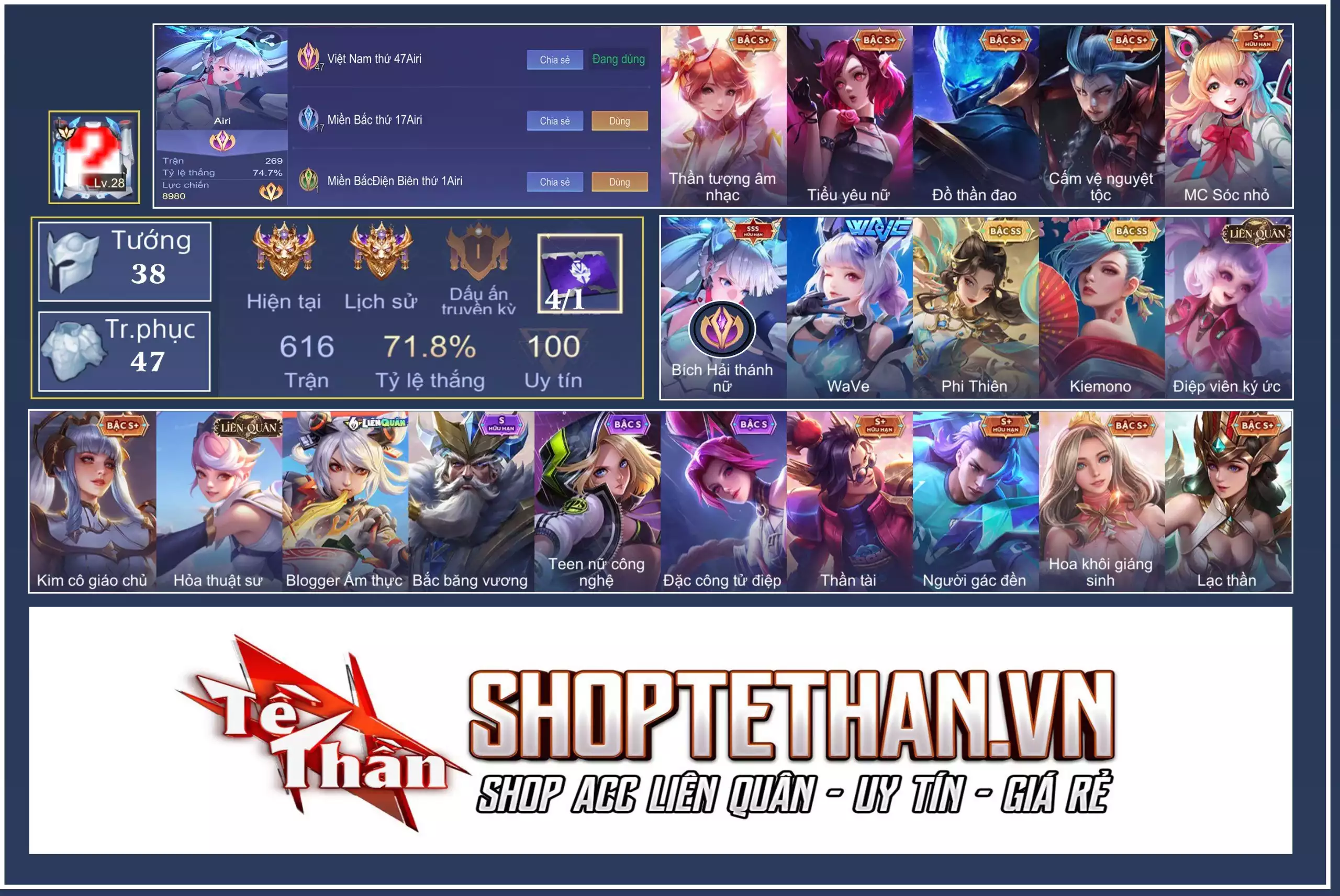 Loại acc | MUA ACC LIÊN QUÂN VIP: SKIN SSS, ANIME, CỤC VÀNG, MÁC THÁCH ĐẤU |