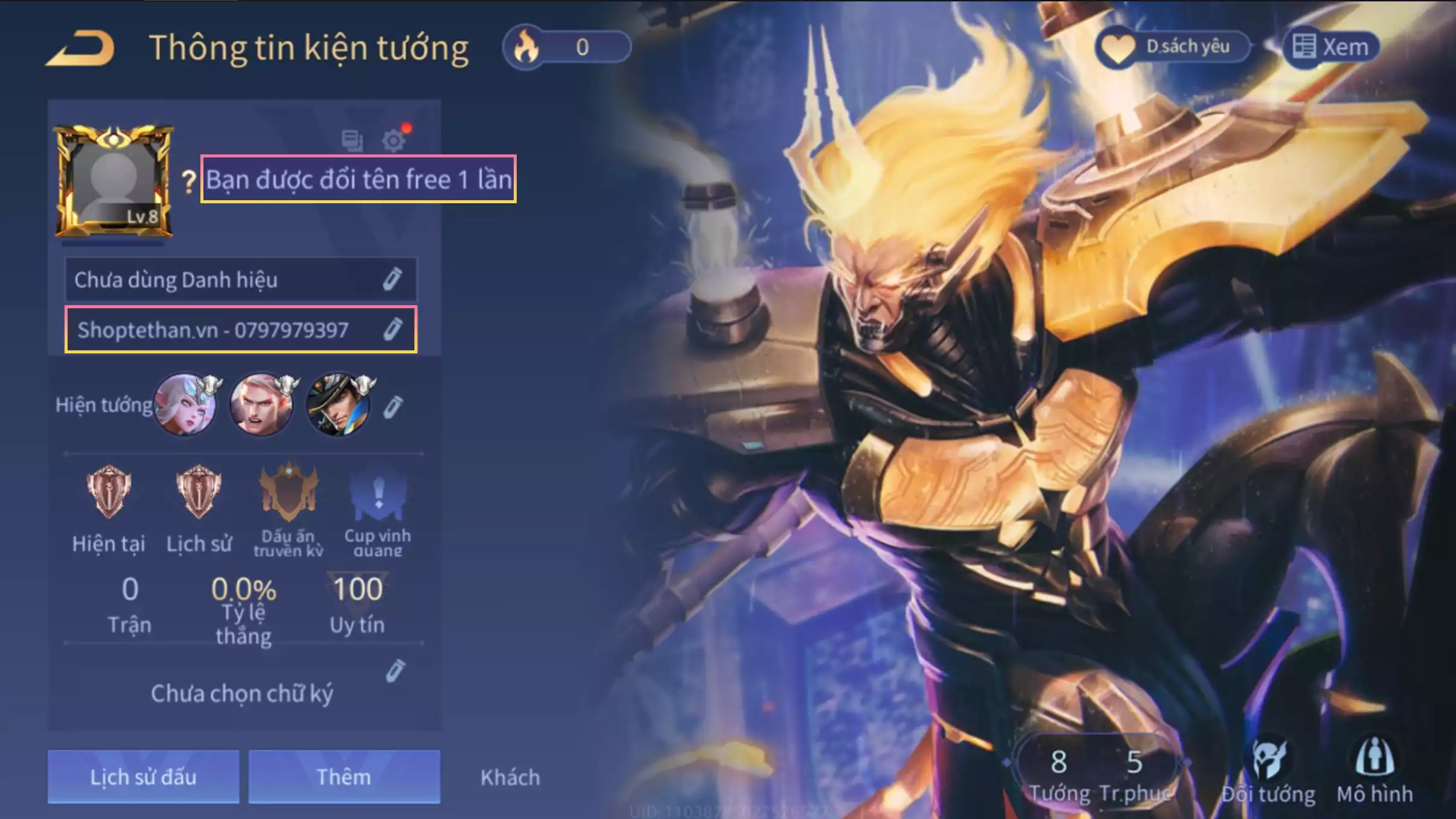 Loại acc MUA ACC REG TRẮNG THÔNG TIN | NICK LIÊN QUÂN REG (LẺ 1 SKIN)