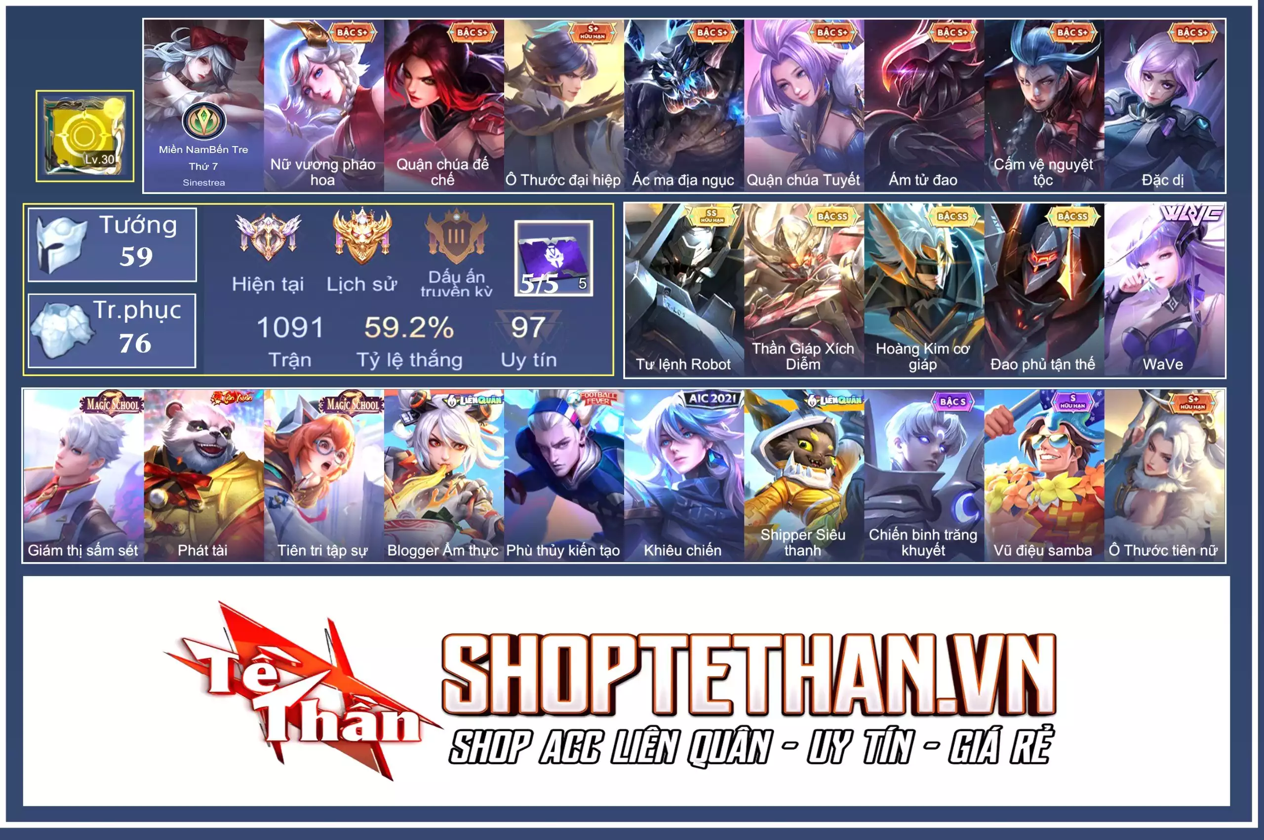 | Loại acc | MUA ACC LIÊN QUÂN GIÁ RẺ, NHIỀU SKIN S+, SS, SSHH. TỰ ĐỘNG | AN TOÀN | BẢO MẬT | UY TÍN |