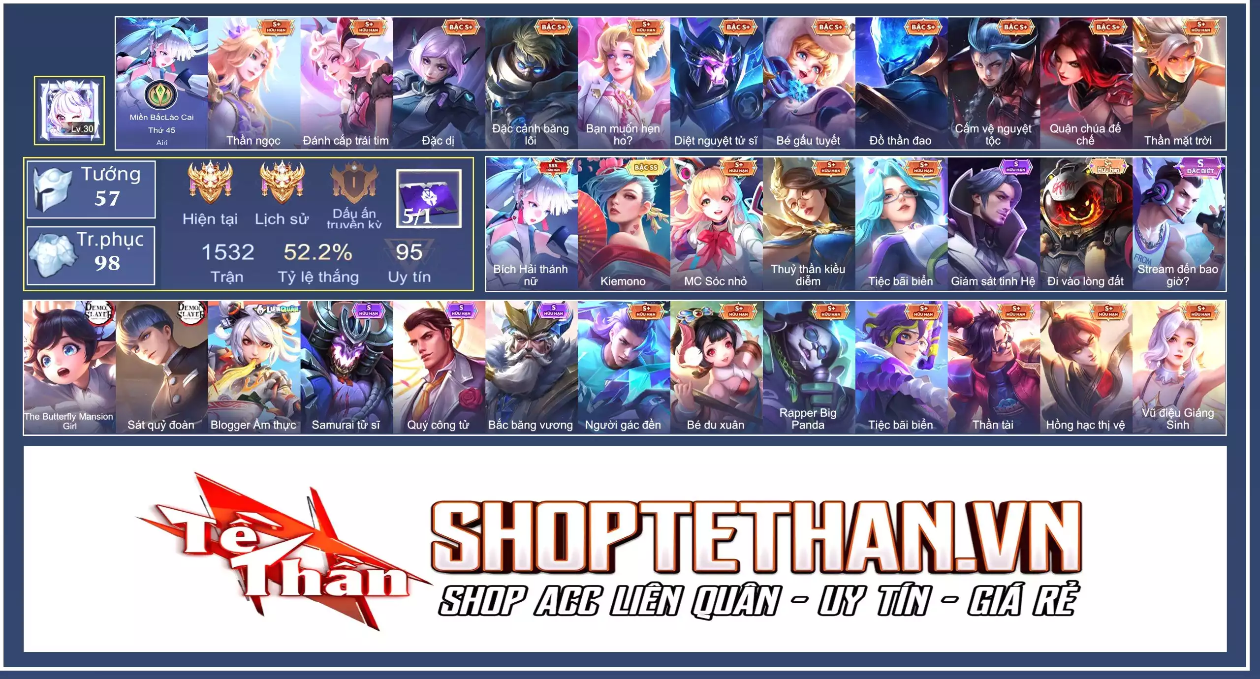 Loại acc | MUA ACC LIÊN QUÂN VIP: SKIN SSS, ANIME, CỤC VÀNG, MÁC THÁCH ĐẤU |