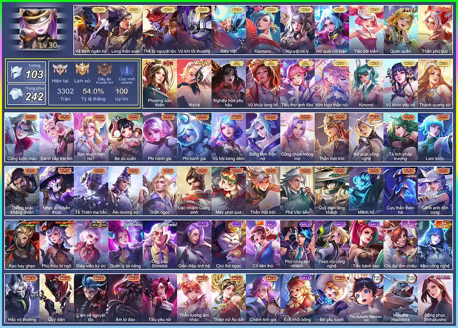 Loại acc | MUA ACC LIÊN QUÂN VIP: SKIN SSS, ANIME, CỤC VÀNG, MÁC THÁCH ĐẤU |