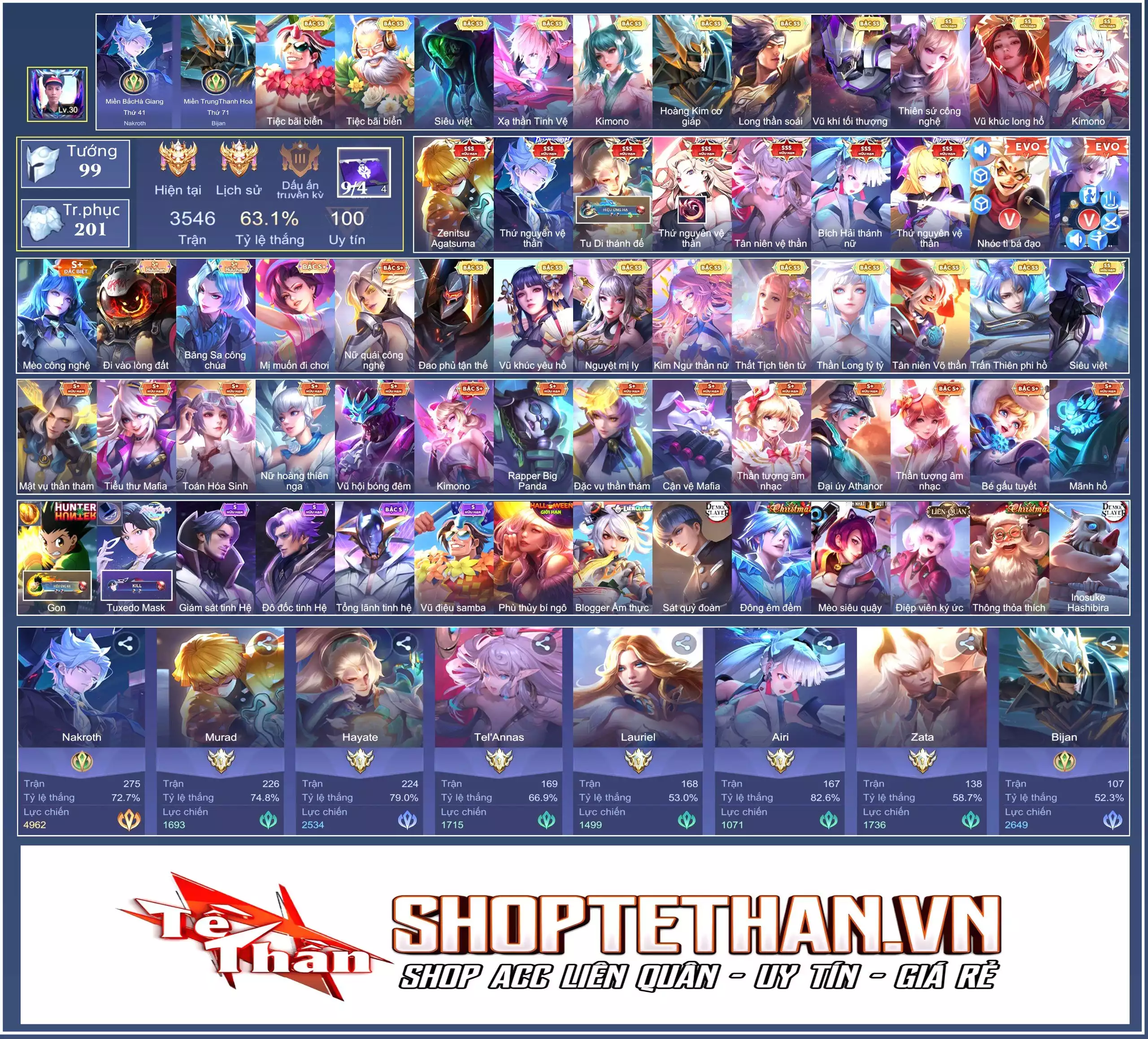 | Loại acc | MUA ACC LIÊN QUÂN VIP: SKIN SSS, ANIME, CỤC VÀNG, MÁC THÁCH ĐẤU |