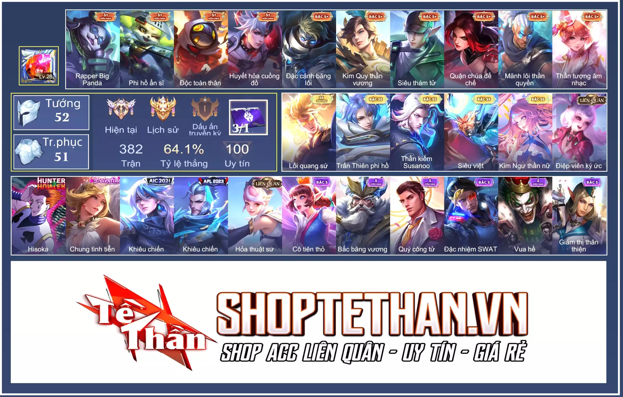 Loại acc MUA ACC LIÊN QUÂN GIÁ RẺ, NHIỀU SKIN S+, SS, SSHH. TỰ ĐỘNG | AN TOÀN | BẢO MẬT | UY TÍN