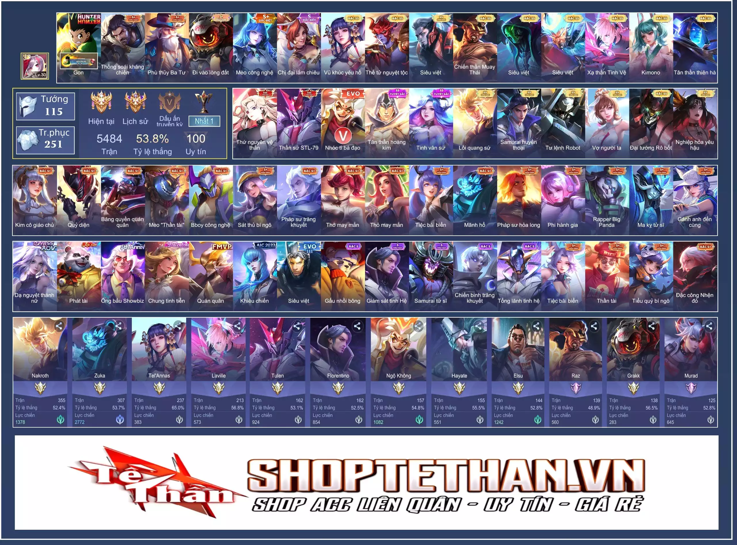 Loại acc | MUA ACC LIÊN QUÂN VIP: SKIN SSS, ANIME, CỤC VÀNG, MÁC THÁCH ĐẤU |