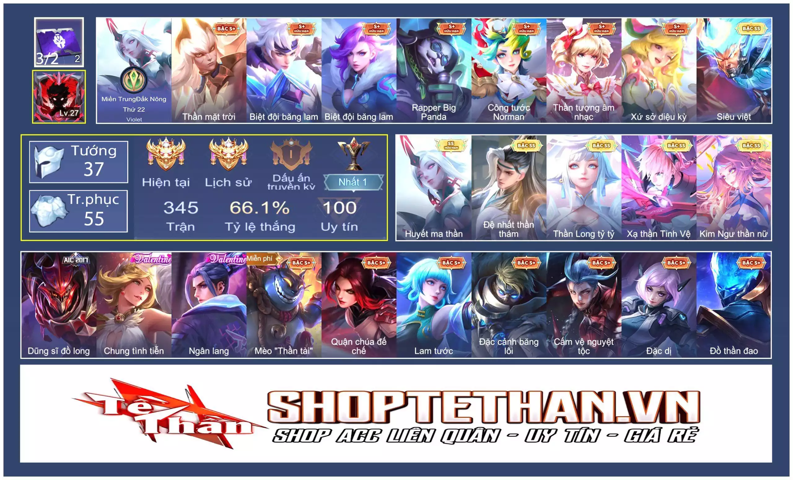 Loại acc MUA ACC LIÊN QUÂN GIÁ RẺ, NHIỀU SKIN S+, SS, SSHH. TỰ ĐỘNG | AN TOÀN | BẢO MẬT | UY TÍN