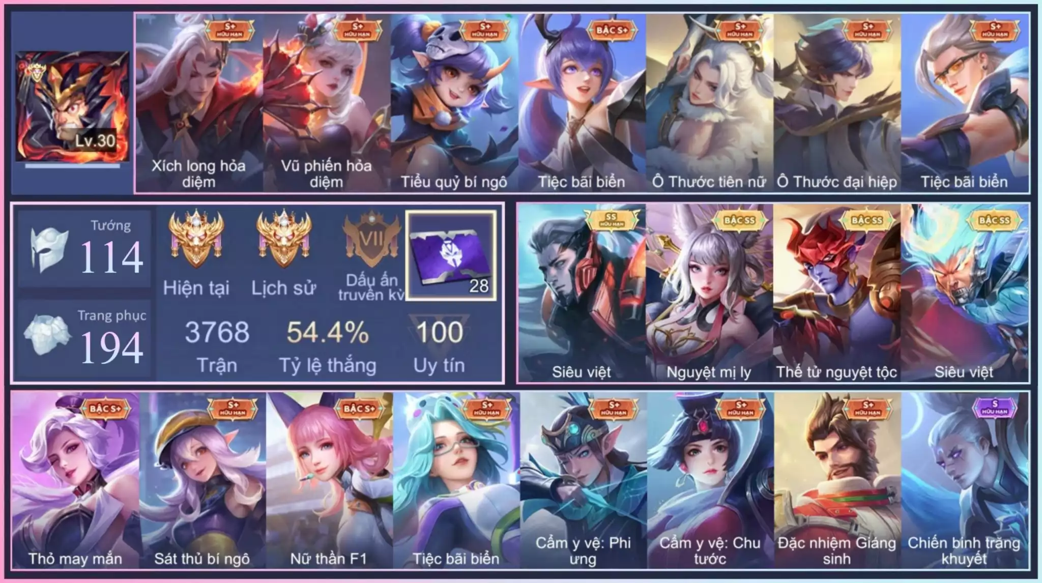 Ngộ không siêu việt,Murad siêu việt,Liliana nguyệt mị lỵ,Yue vũ phiến hoả diện…Trắng thông tin