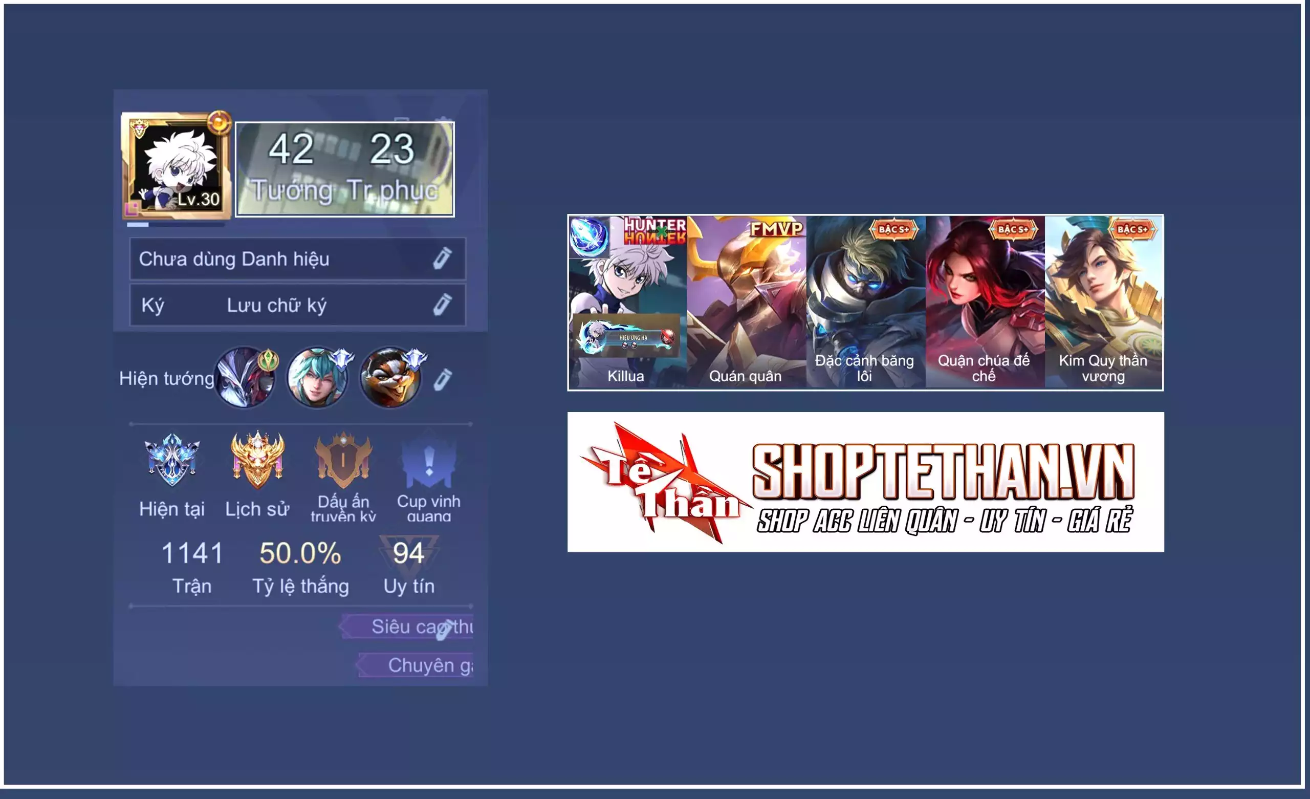 Loại acc MUA ACC LIÊN QUÂN VIP: SKIN SSS, ANIME, CỤC VÀNG, MÁC THÁCH ĐẤU