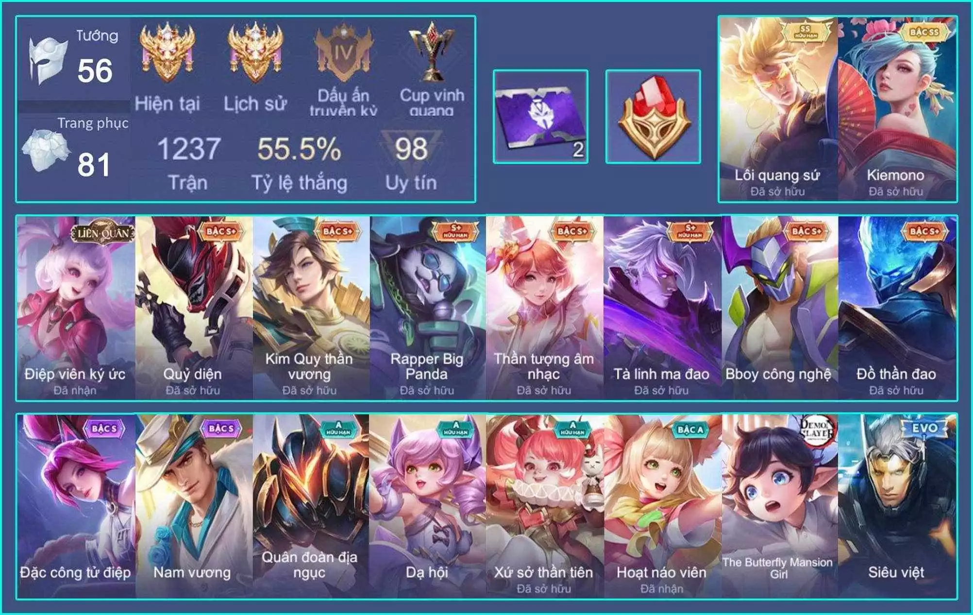 | Loại acc | MUA ACC LIÊN QUÂN GIÁ RẺ, NHIỀU SKIN S+, SS, SSHH. TỰ ĐỘNG | AN TOÀN | BẢO MẬT | UY TÍN |