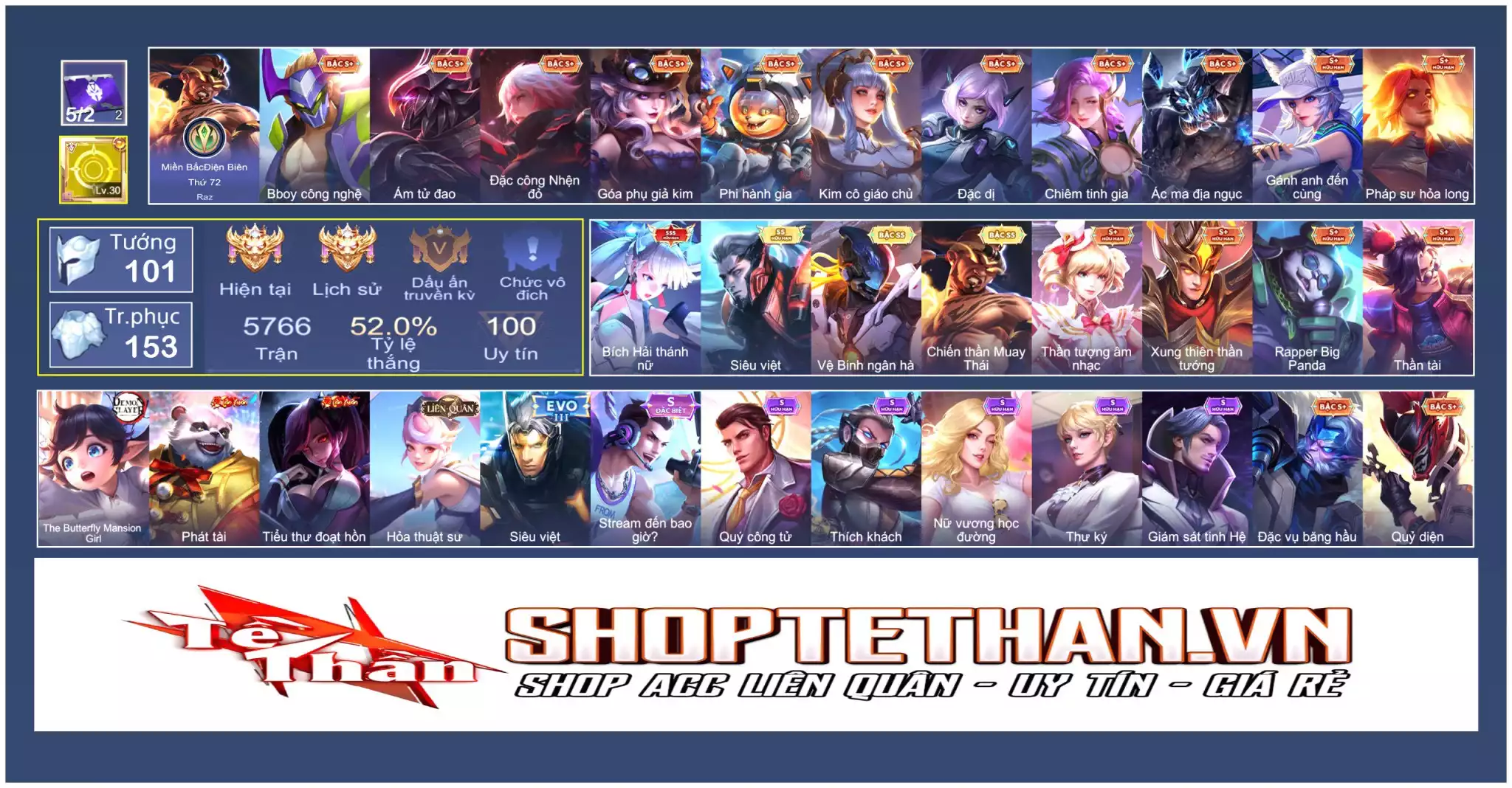 Loại acc | MUA ACC LIÊN QUÂN VIP: SKIN SSS, ANIME, CỤC VÀNG, MÁC THÁCH ĐẤU |