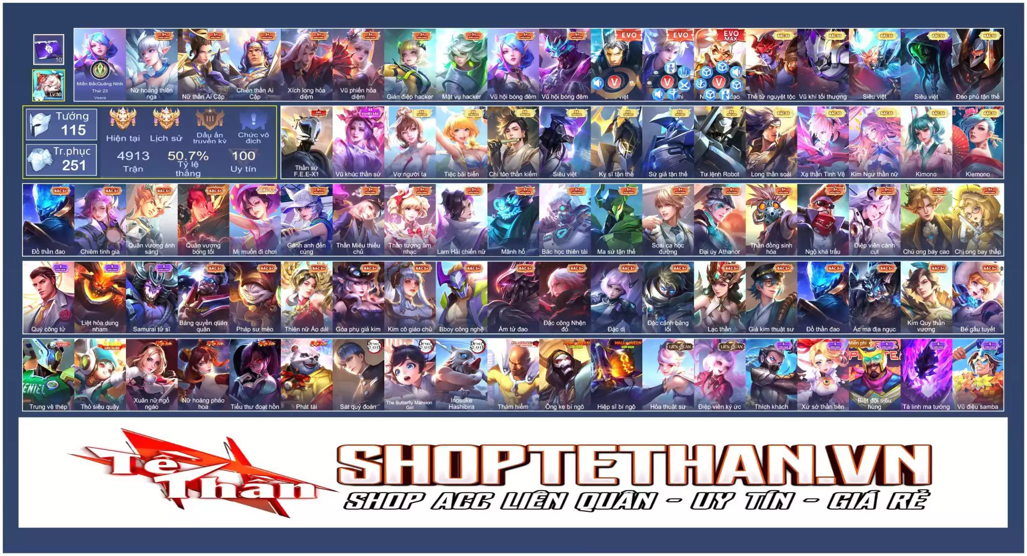 Loại acc | MUA ACC LIÊN QUÂN VIP: SKIN SSS, ANIME, CỤC VÀNG, MÁC THÁCH ĐẤU |
