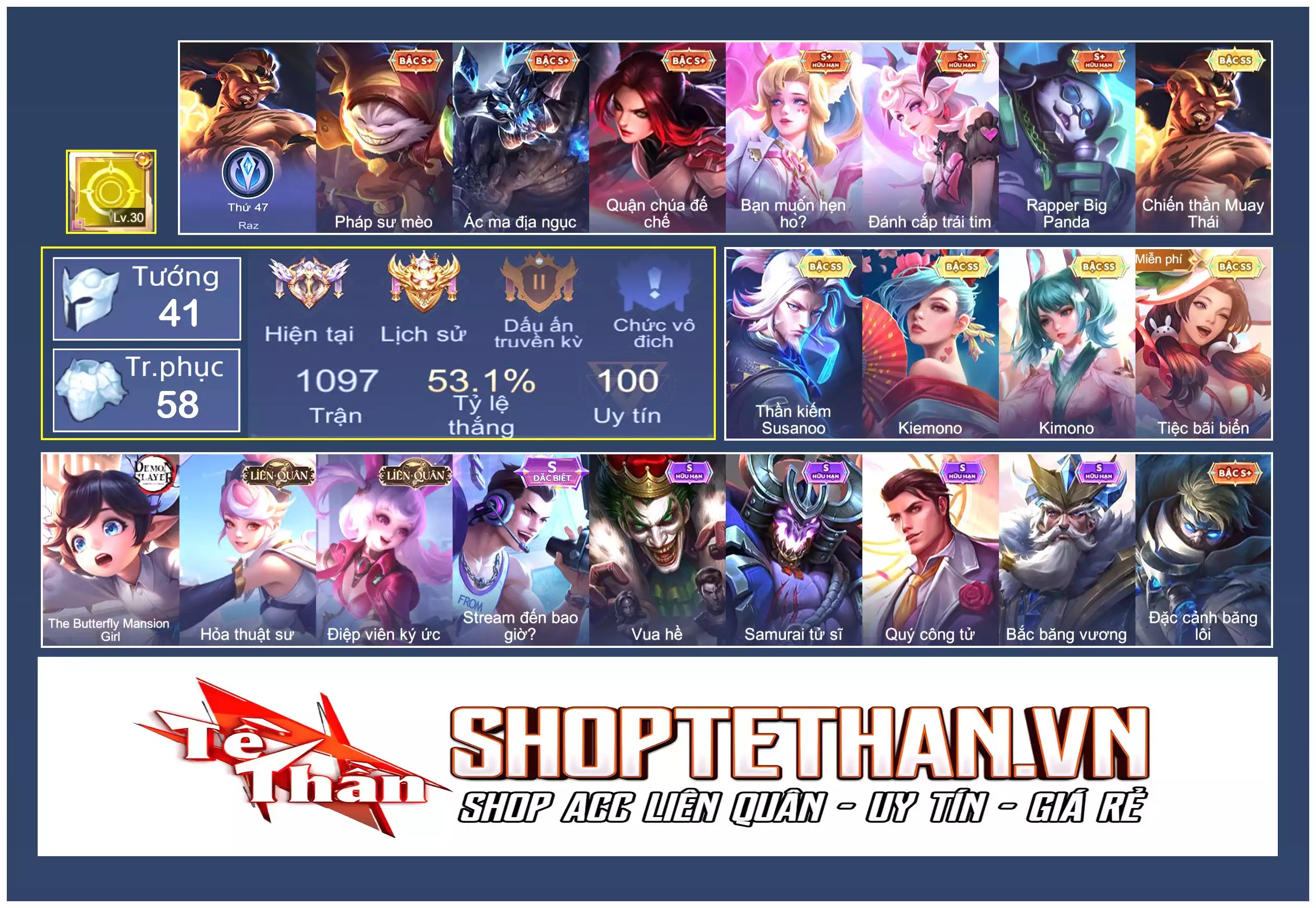 Loại acc MUA ACC LIÊN QUÂN GIÁ RẺ, NHIỀU SKIN S+, SS, SSHH. TỰ ĐỘNG | AN TOÀN | BẢO MẬT | UY TÍN