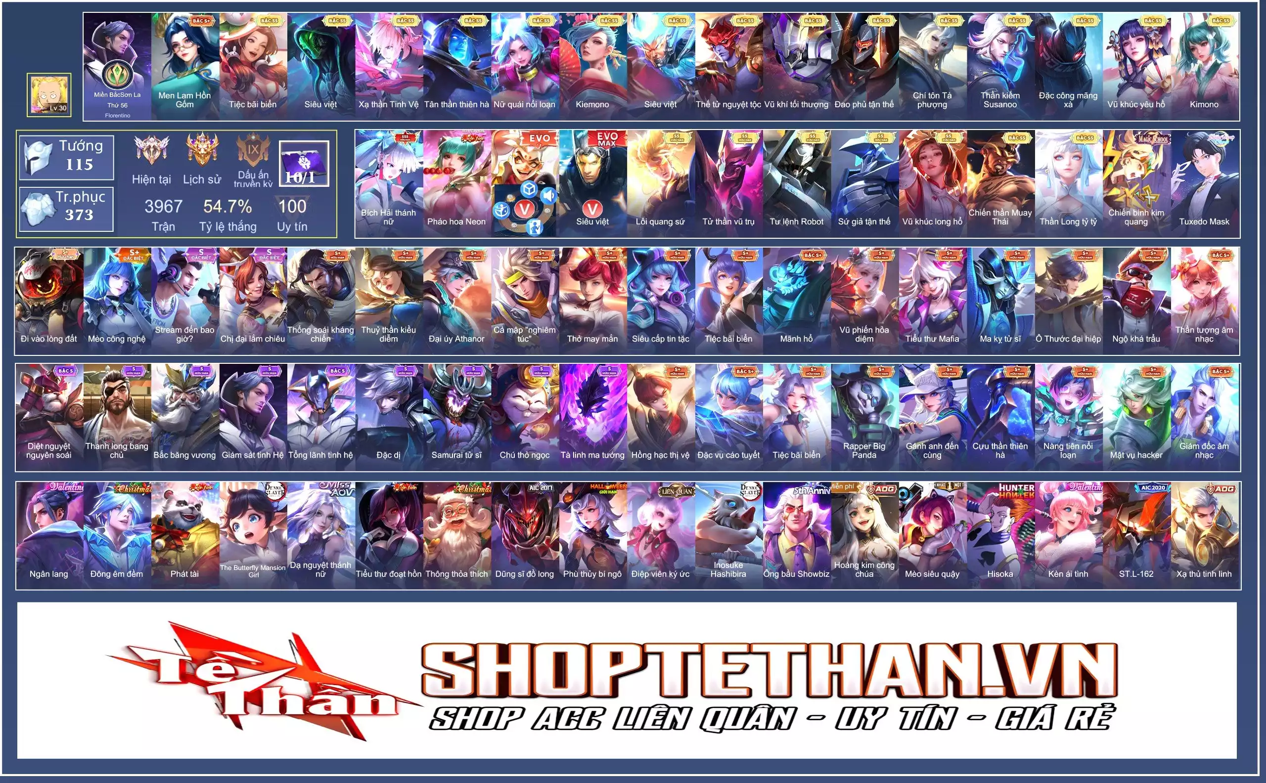 Loại acc | MUA ACC LIÊN QUÂN VIP: SKIN SSS, ANIME, CỤC VÀNG, MÁC THÁCH ĐẤU |