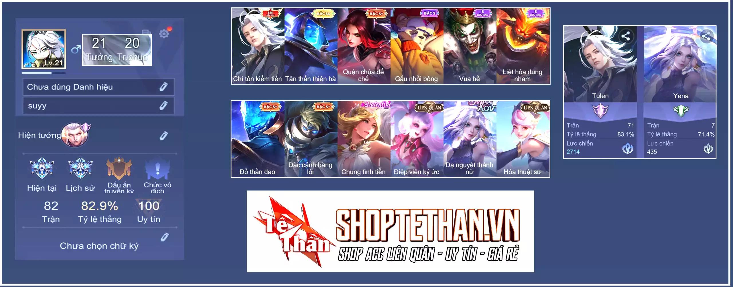 Acc #23600: Tulen chí tôn/thiên hà, Murad thần đao, Yena dạ nguyệt ... Mỗi SĐT, giá 1,200,000 đ