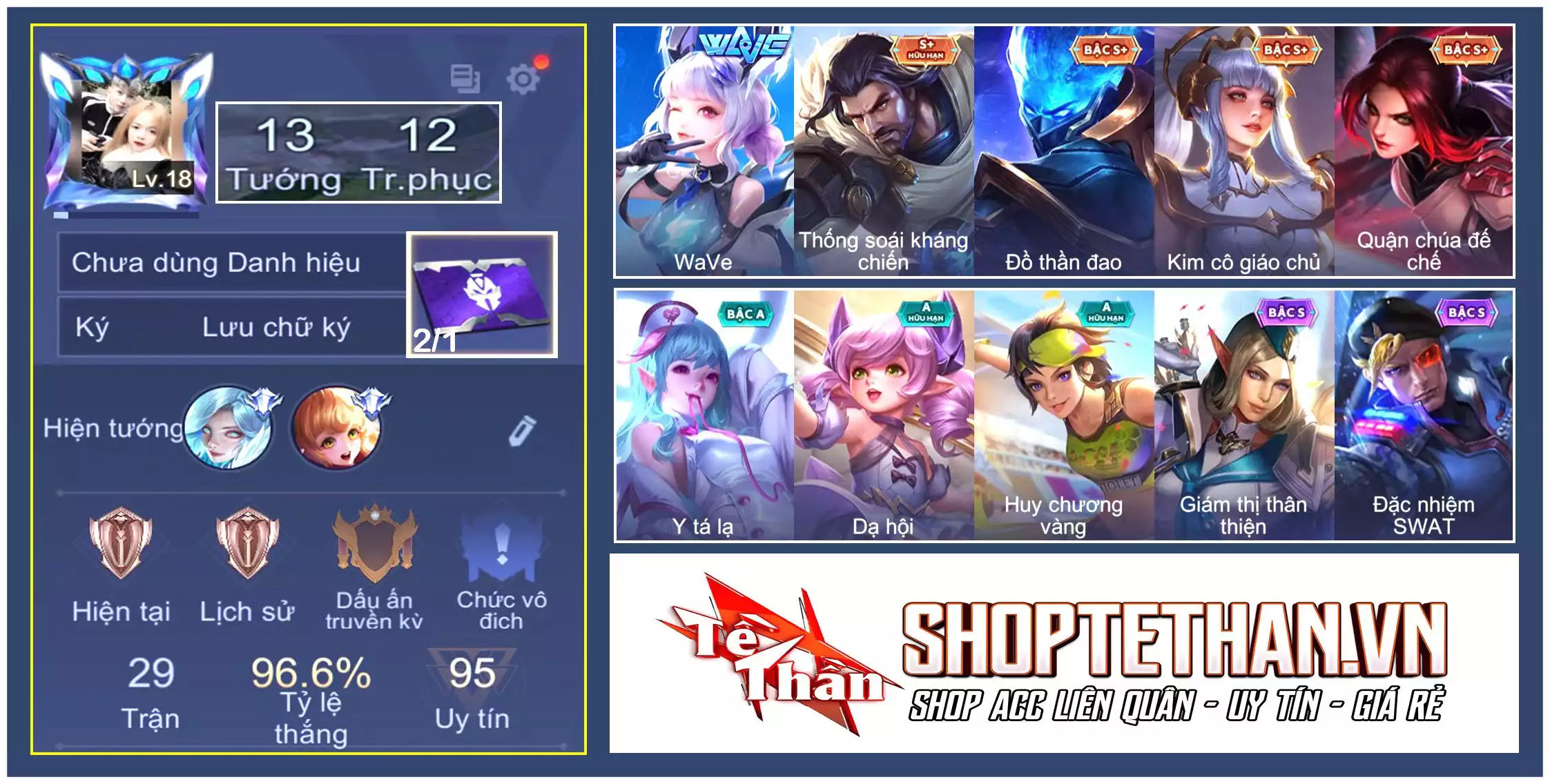 Loại acc MUA ACC LIÊN QUÂN REG VIP, TRẮNG THÔNG TIN (NHIỀU SKIN, ANIME, SSS)