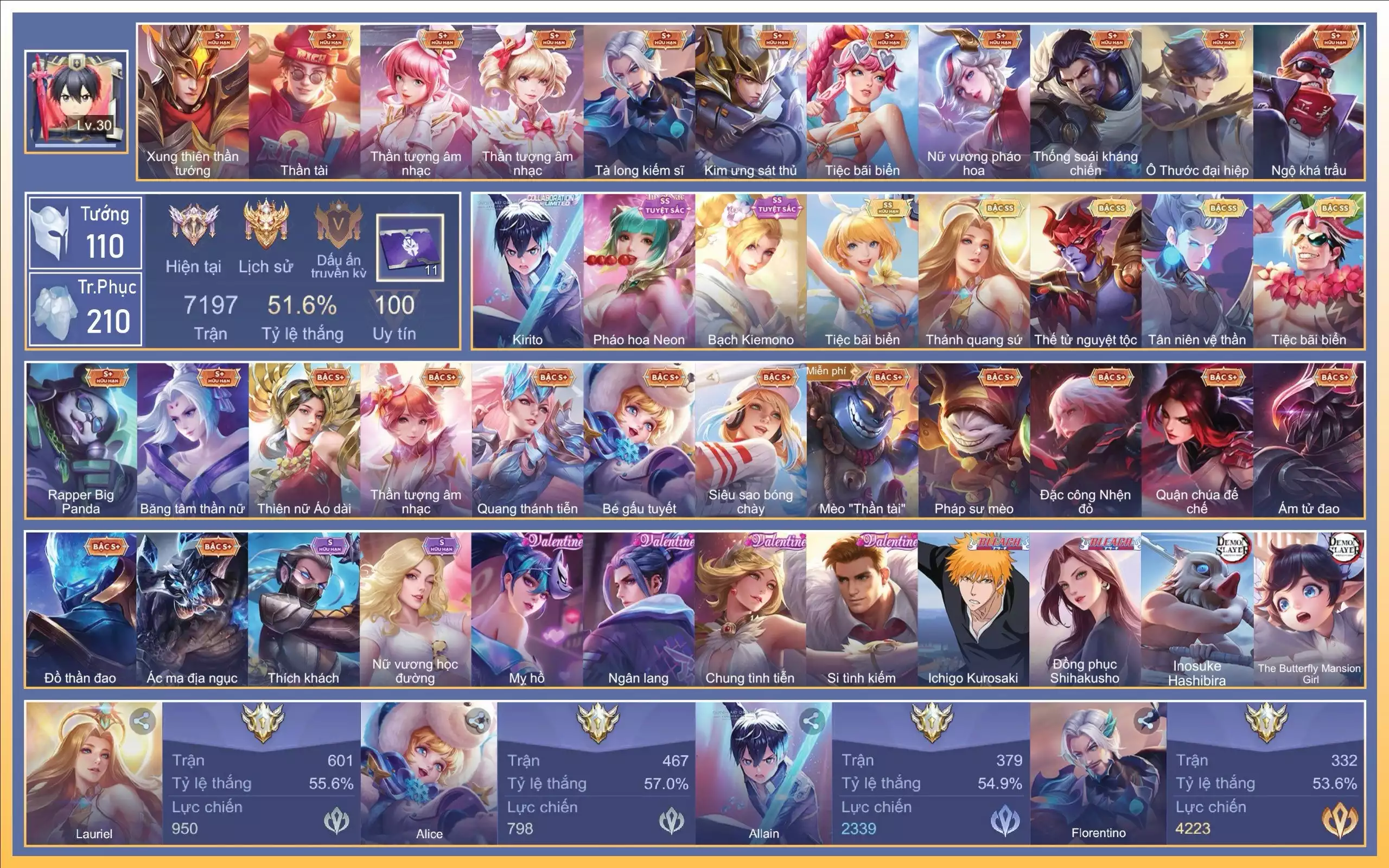 Loại acc | MUA ACC LIÊN QUÂN VIP: SKIN SSS, ANIME, CỤC VÀNG, MÁC THÁCH ĐẤU |
