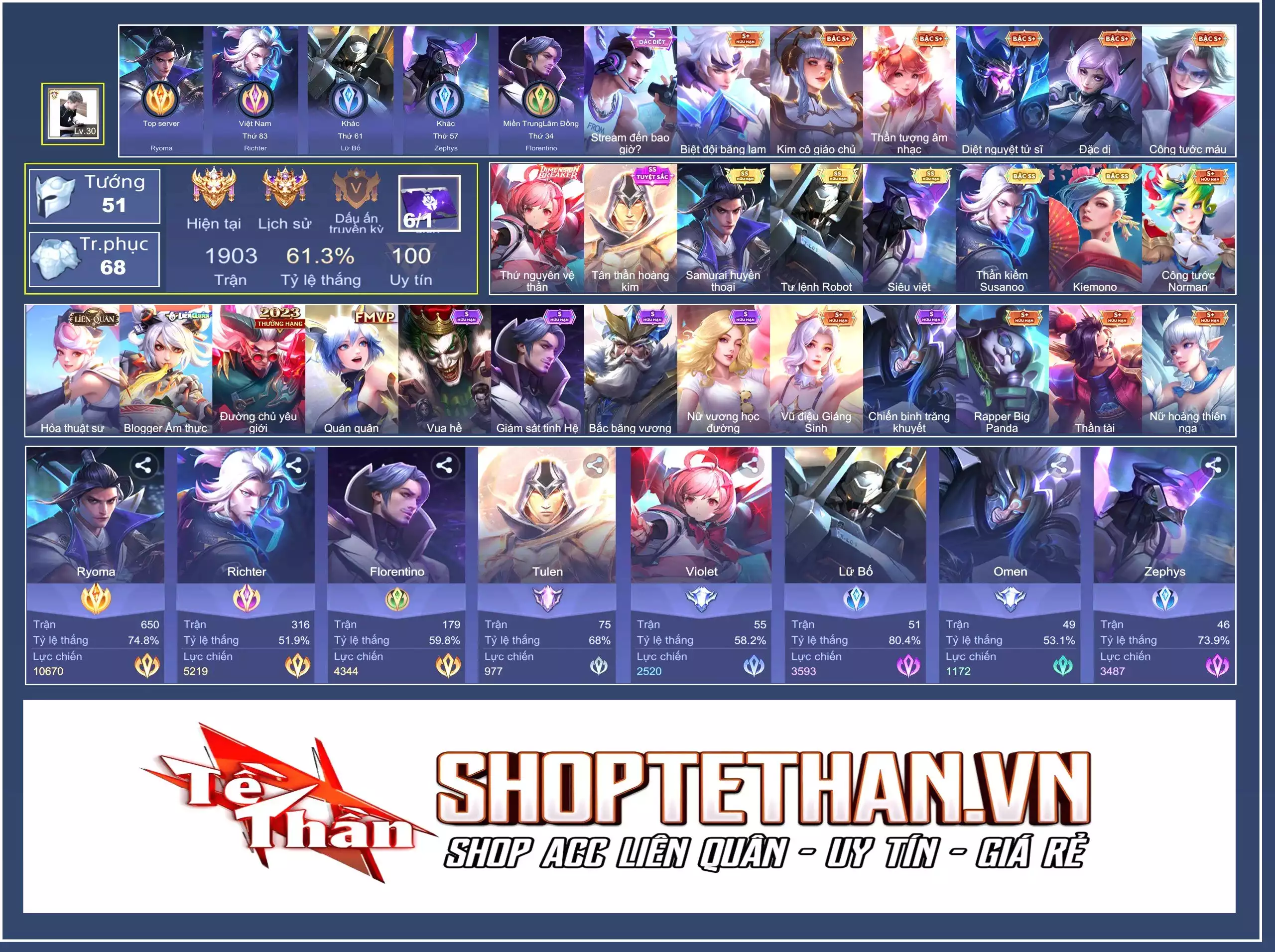Loại acc MUA ACC LIÊN QUÂN VIP: SKIN SSS, ANIME, CỤC VÀNG, MÁC THÁCH ĐẤU