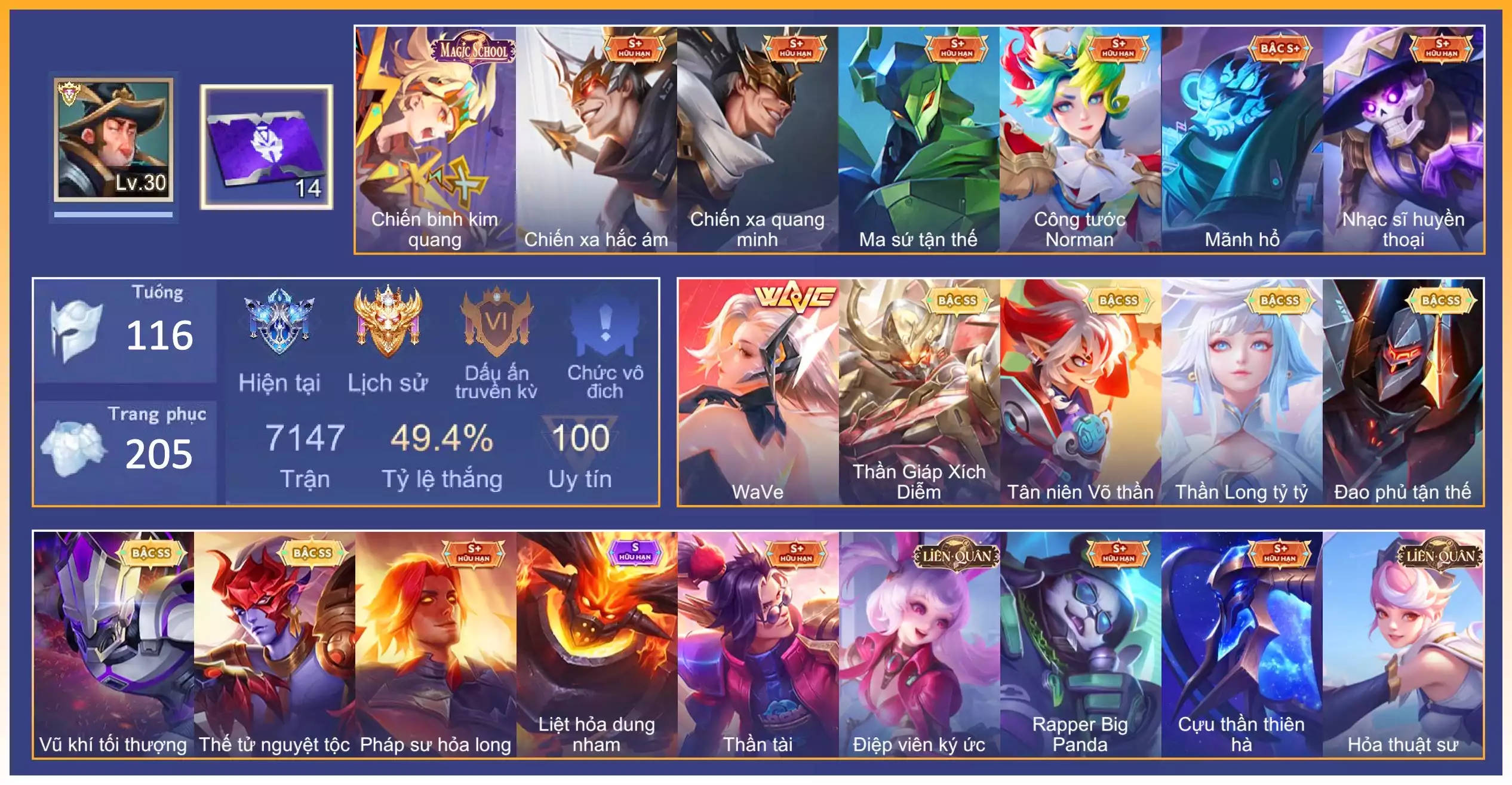 Yena wave,Ngộ không diễm xích,Ngộ không tân niên,Omen đao phủ tận thế,Vio thần long tỷ tỷ,Zuka mãnh hổ,Xeniel ma sứ tận thế…Trắng thông tin không liên kết
