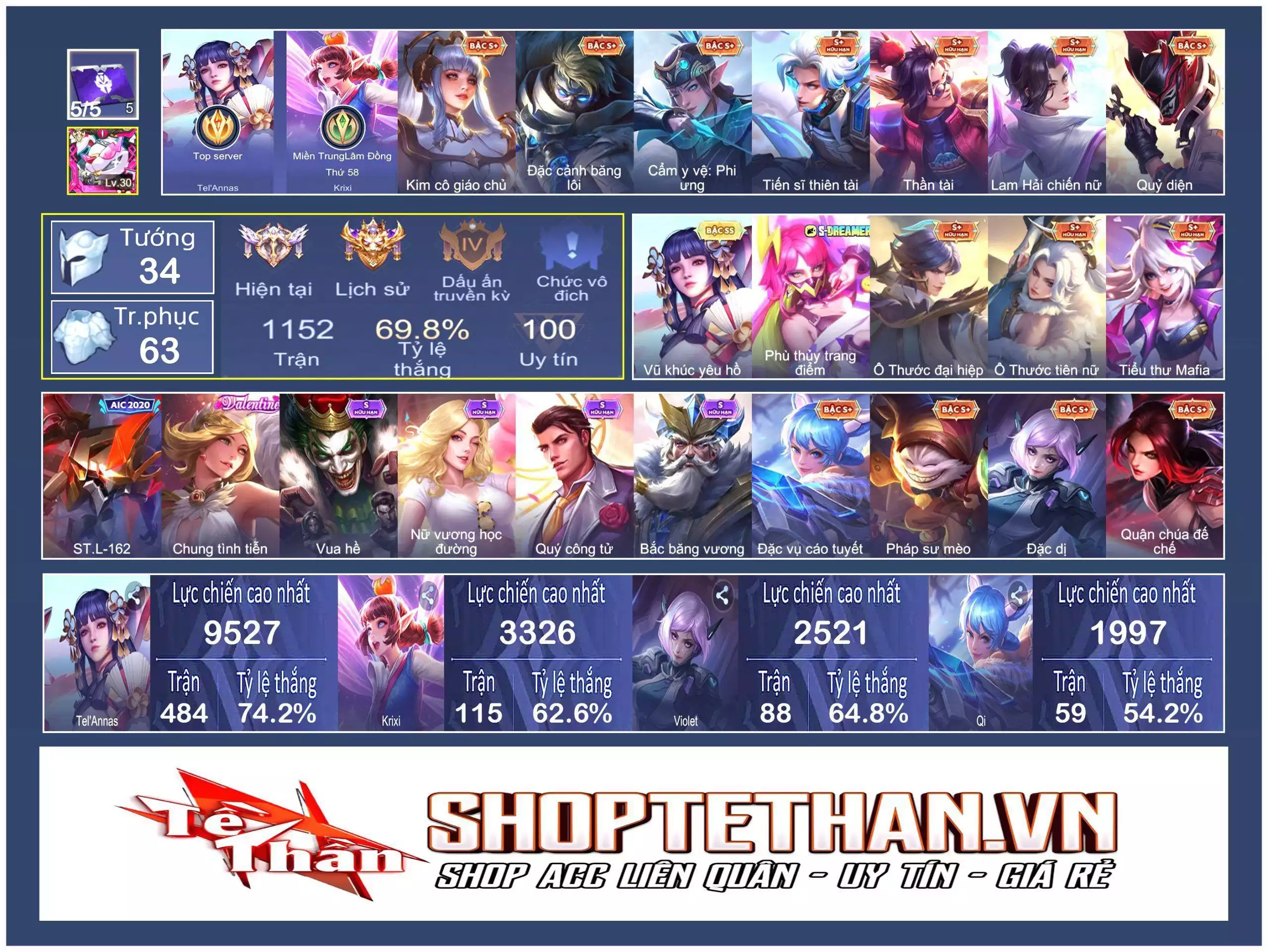 Loại acc | MUA ACC LIÊN QUÂN VIP: SKIN SSS, ANIME, CỤC VÀNG, MÁC THÁCH ĐẤU |