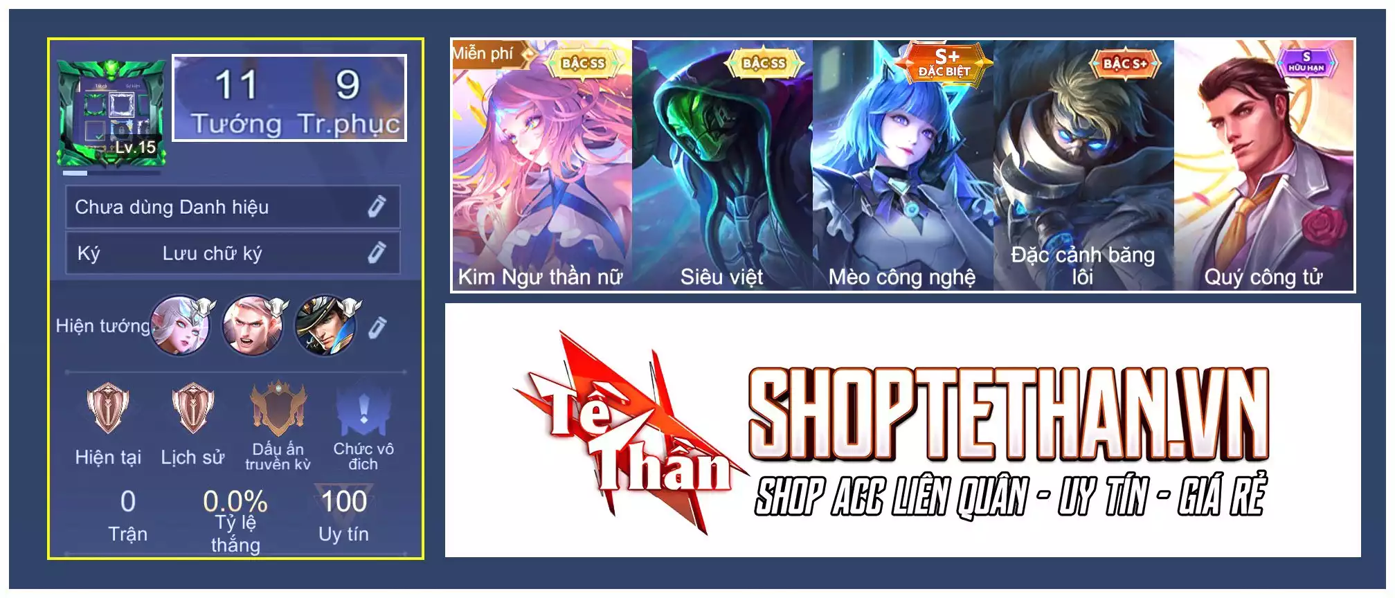 MUA ACC LIÊN QUÂN REG VIP, TRẮNG THÔNG TIN (NHIỀU SKIN, ANIME, SSS)