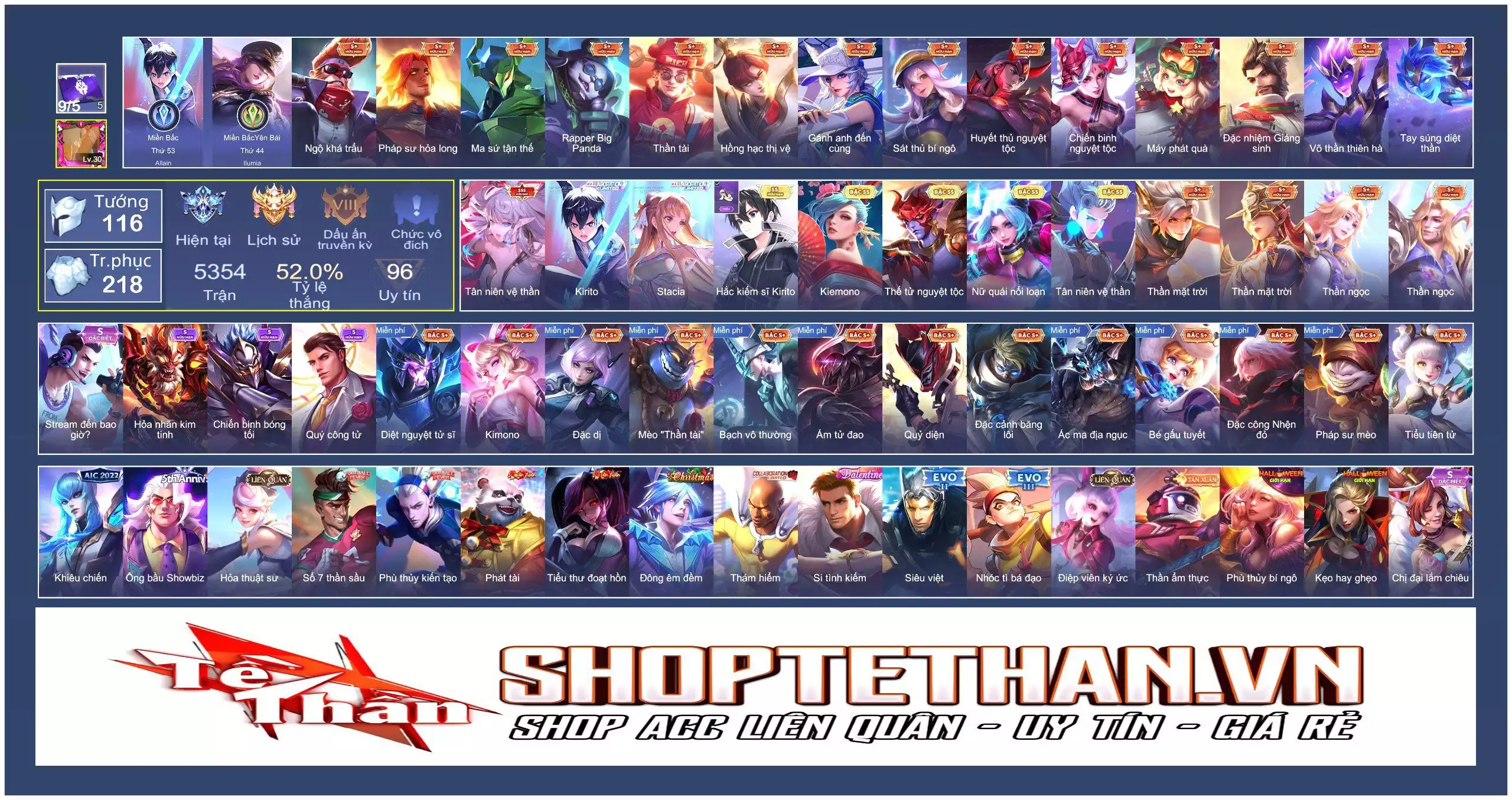 Loại acc | MUA ACC LIÊN QUÂN VIP: SKIN SSS, ANIME, CỤC VÀNG, MÁC THÁCH ĐẤU |