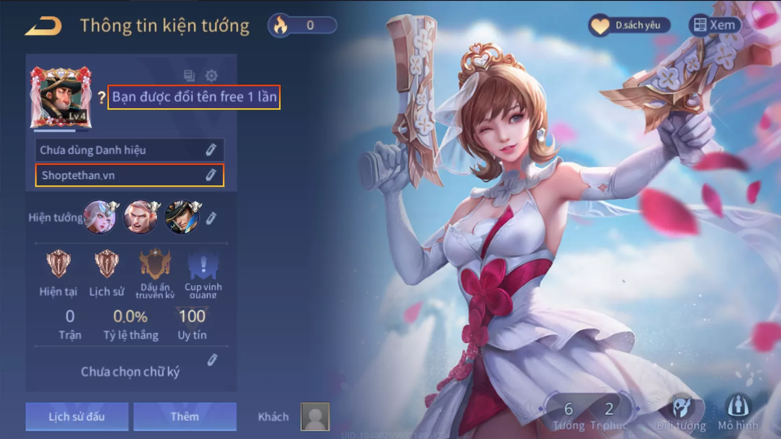 Acc #25421: Acc reg Violet vợ người ta, sẵn tướng, dư vàng, free đổi tên, trắng thông tin, giá 119,000 đ