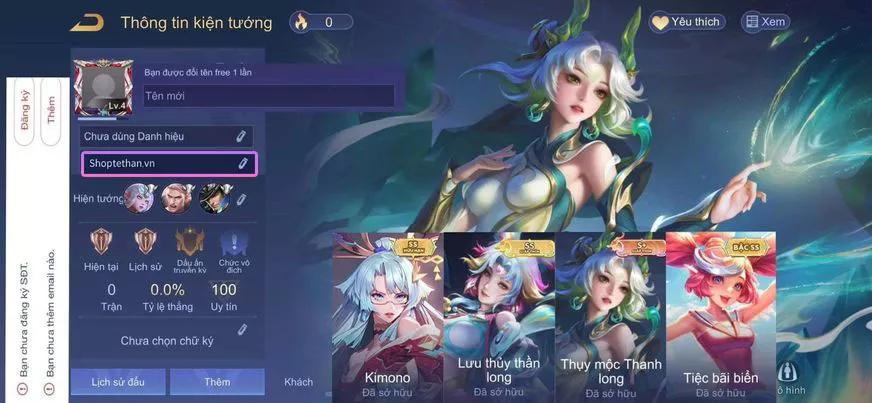 Acc #25656: Veres kimono, Rouie thụy mộc thanh long, Liliana lưu thủy thần long, Krixi tiệc xì ke… trắng thông tin, giá 1,099,000 đ