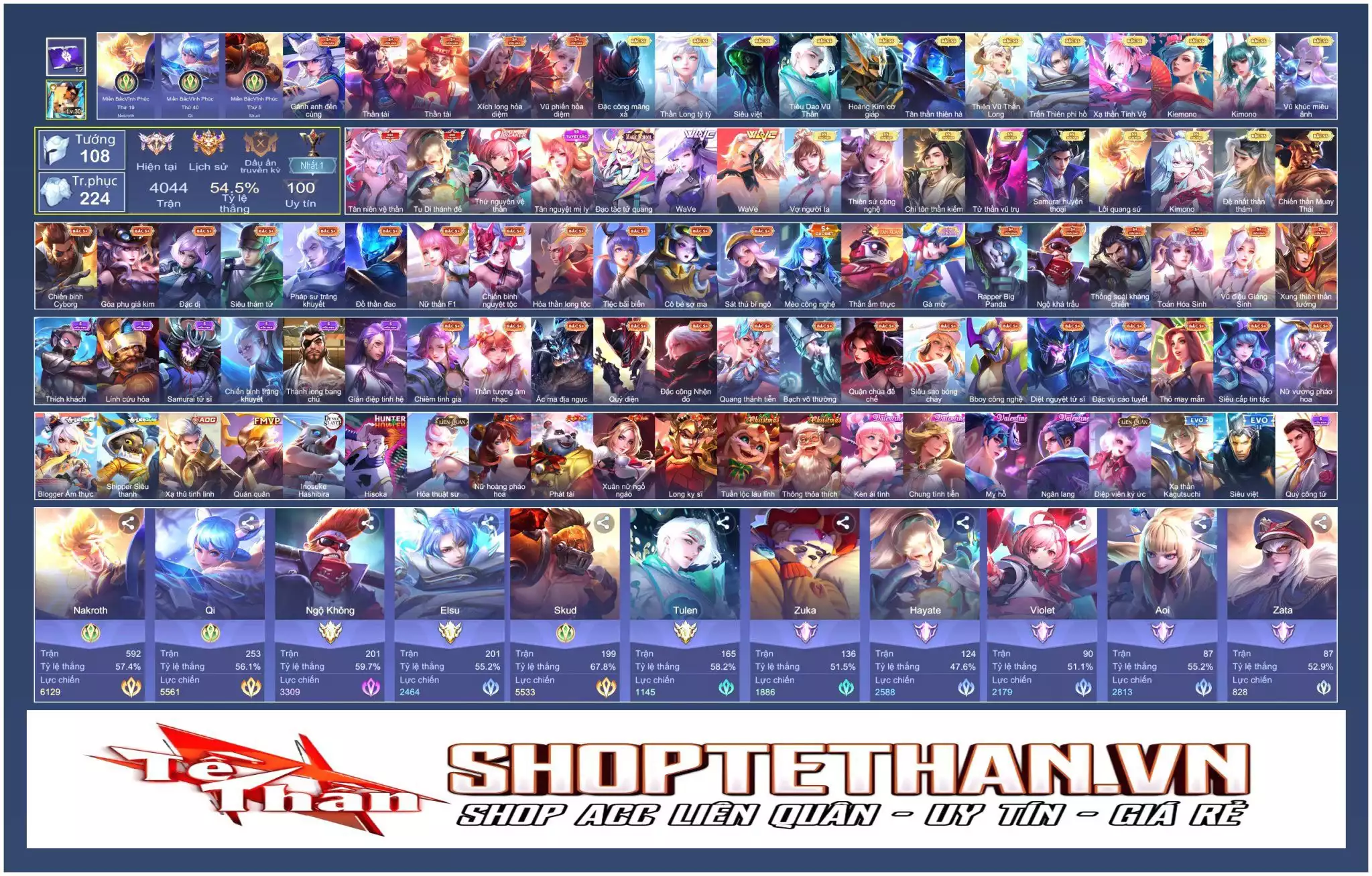 | Loại acc | MUA ACC LIÊN QUÂN VIP: SKIN SSS, ANIME, CỤC VÀNG, MÁC THÁCH ĐẤU |