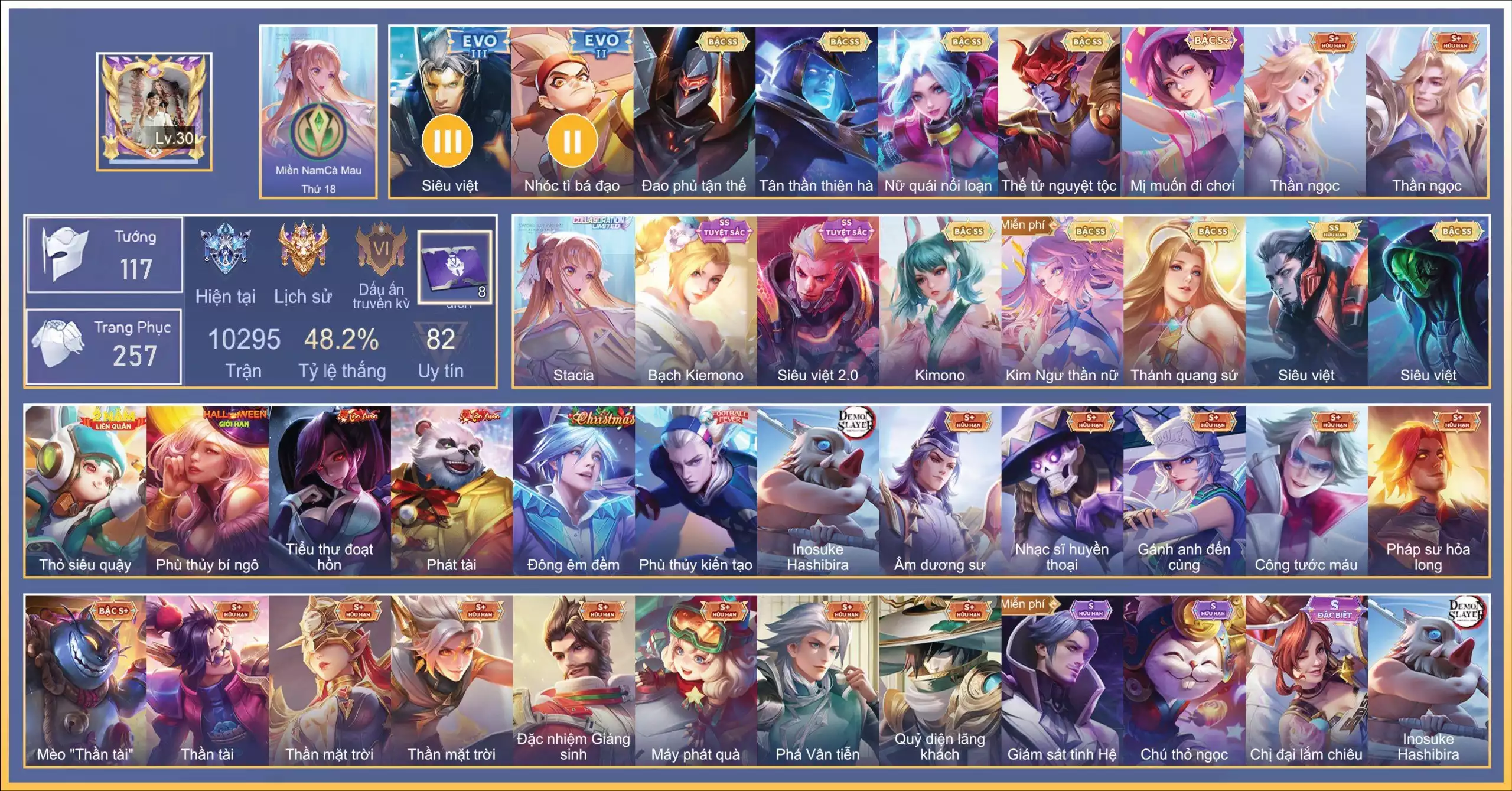 Loại acc | MUA ACC LIÊN QUÂN VIP: SKIN SSS, ANIME, CỤC VÀNG, MÁC THÁCH ĐẤU |