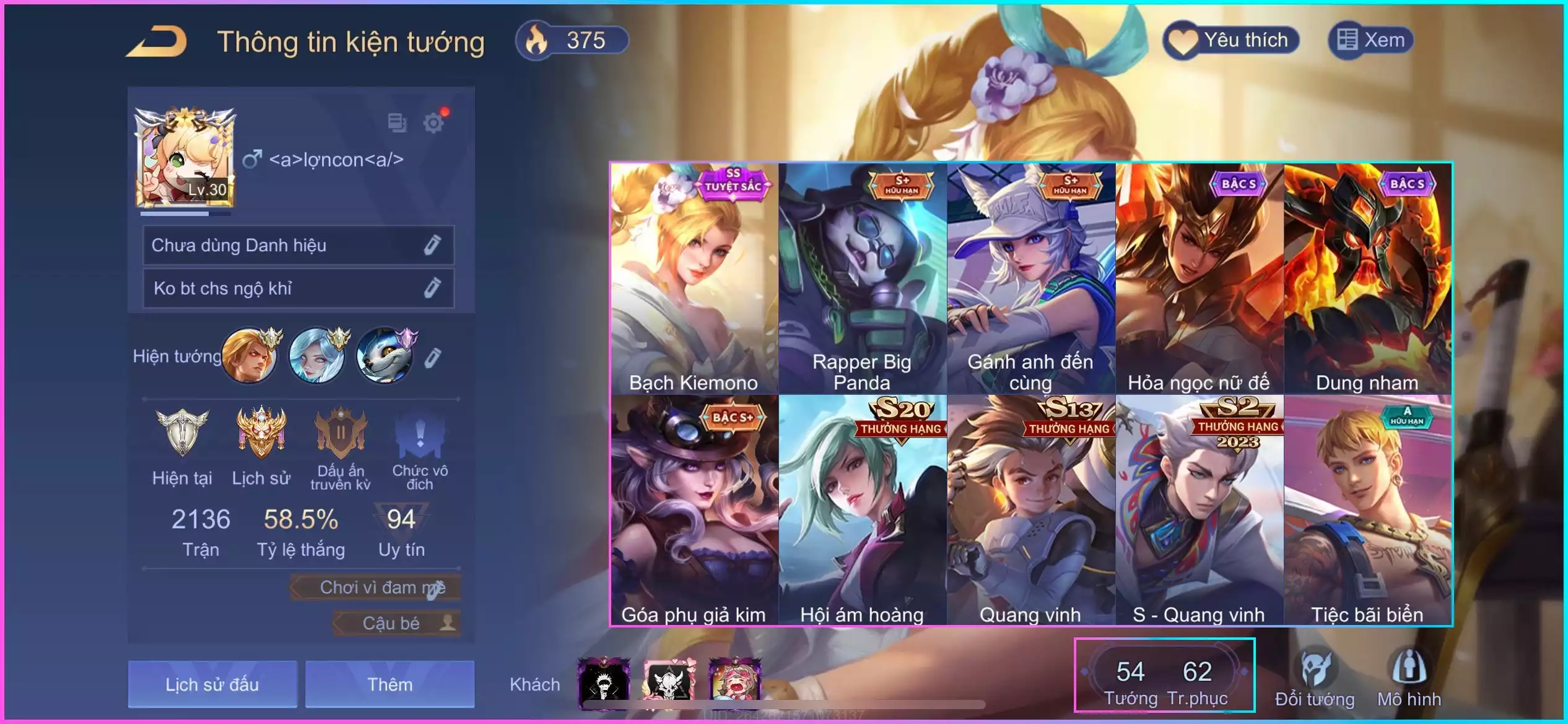 Loại acc MUA ACC LIÊN QUÂN GIÁ RẺ, NHIỀU SKIN S+, SS, SSHH. TỰ ĐỘNG | AN TOÀN | BẢO MẬT | UY TÍN