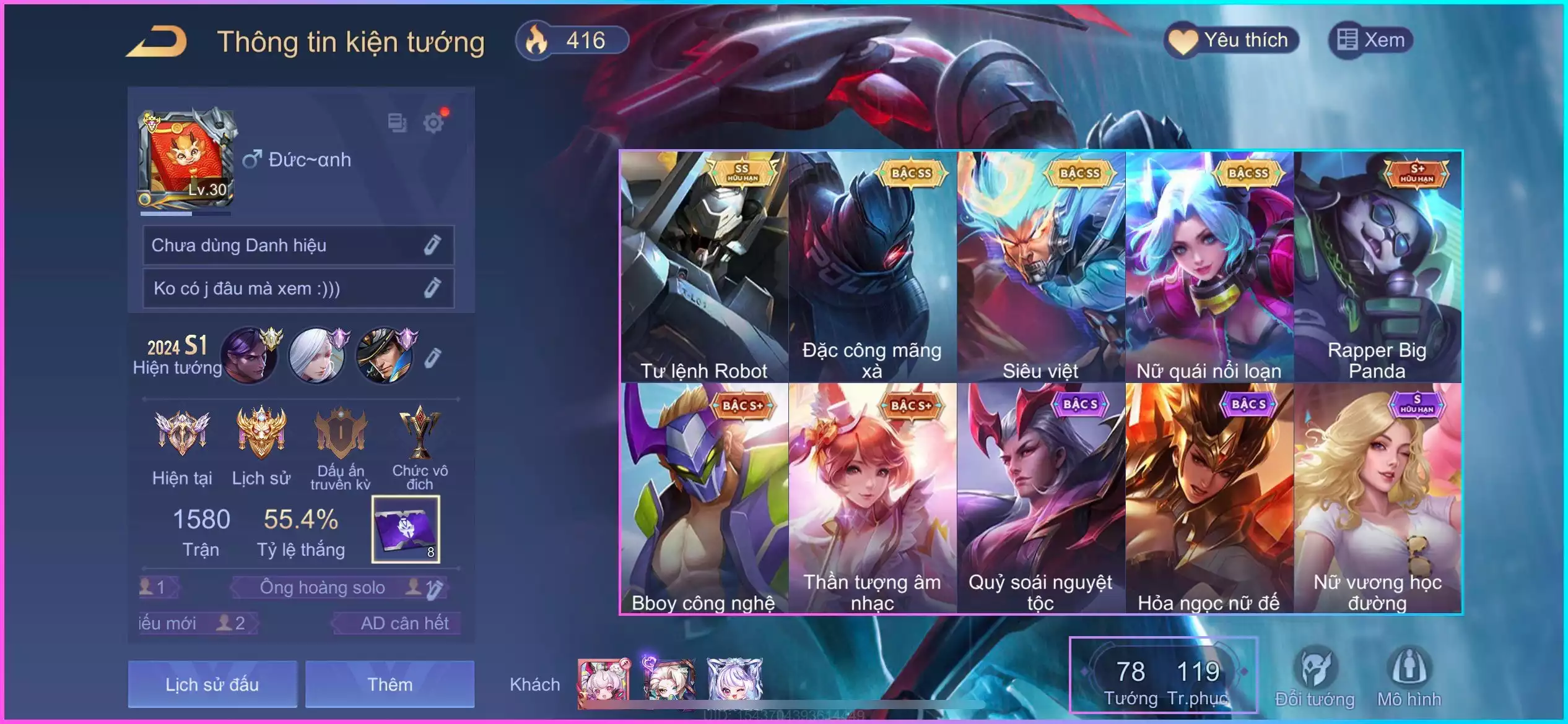 Acc #26038: Lữ bố robot,Ngộ không siêu việt,Qiulien đặc công mãng xà…Trắng thông tin không liên kết, giá 320,000 đ