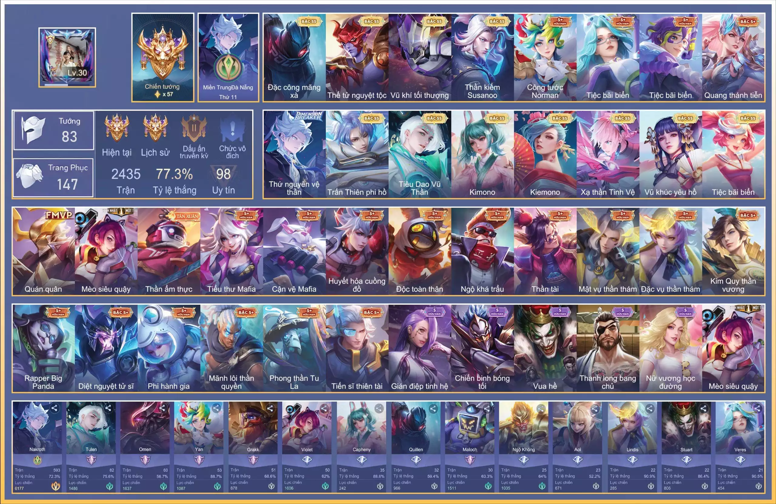 Loại acc | MUA ACC LIÊN QUÂN VIP: SKIN SSS, ANIME, CỤC VÀNG, MÁC THÁCH ĐẤU |