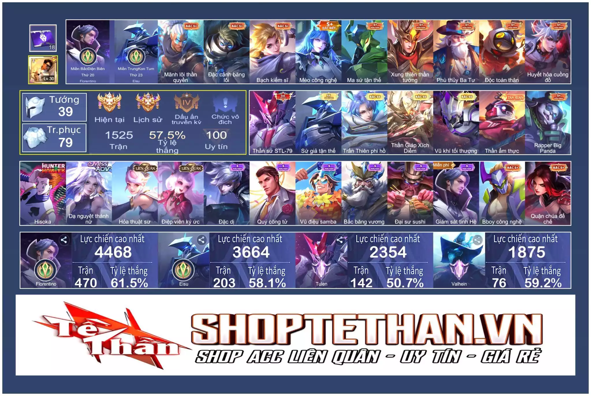 Acc #26471: Tulen thần sứ, Elsu sgtt/phi hồ, Ngộ thần giáp, Vanhel tối thượng ..., giá 1,600,000 đ