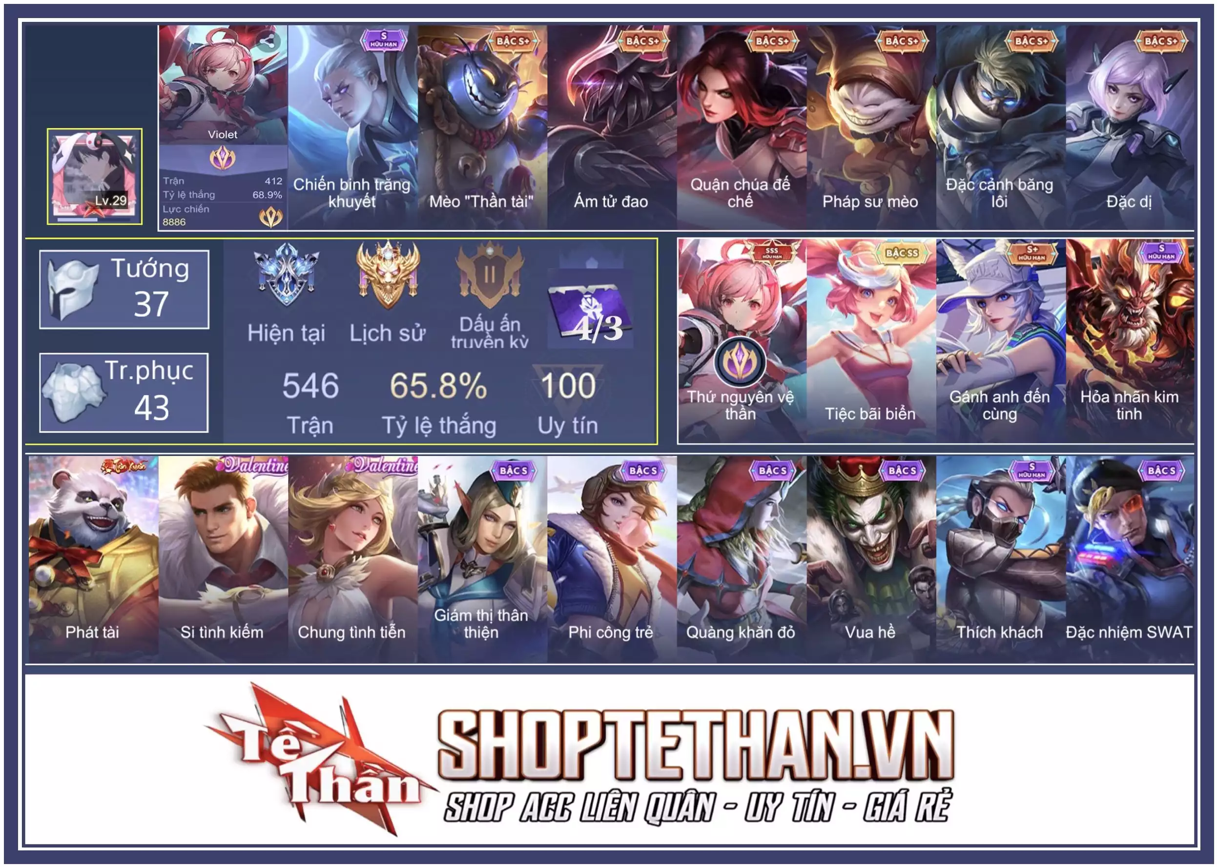 Loại acc | MUA ACC LIÊN QUÂN VIP: SKIN SSS, ANIME, CỤC VÀNG, MÁC THÁCH ĐẤU |