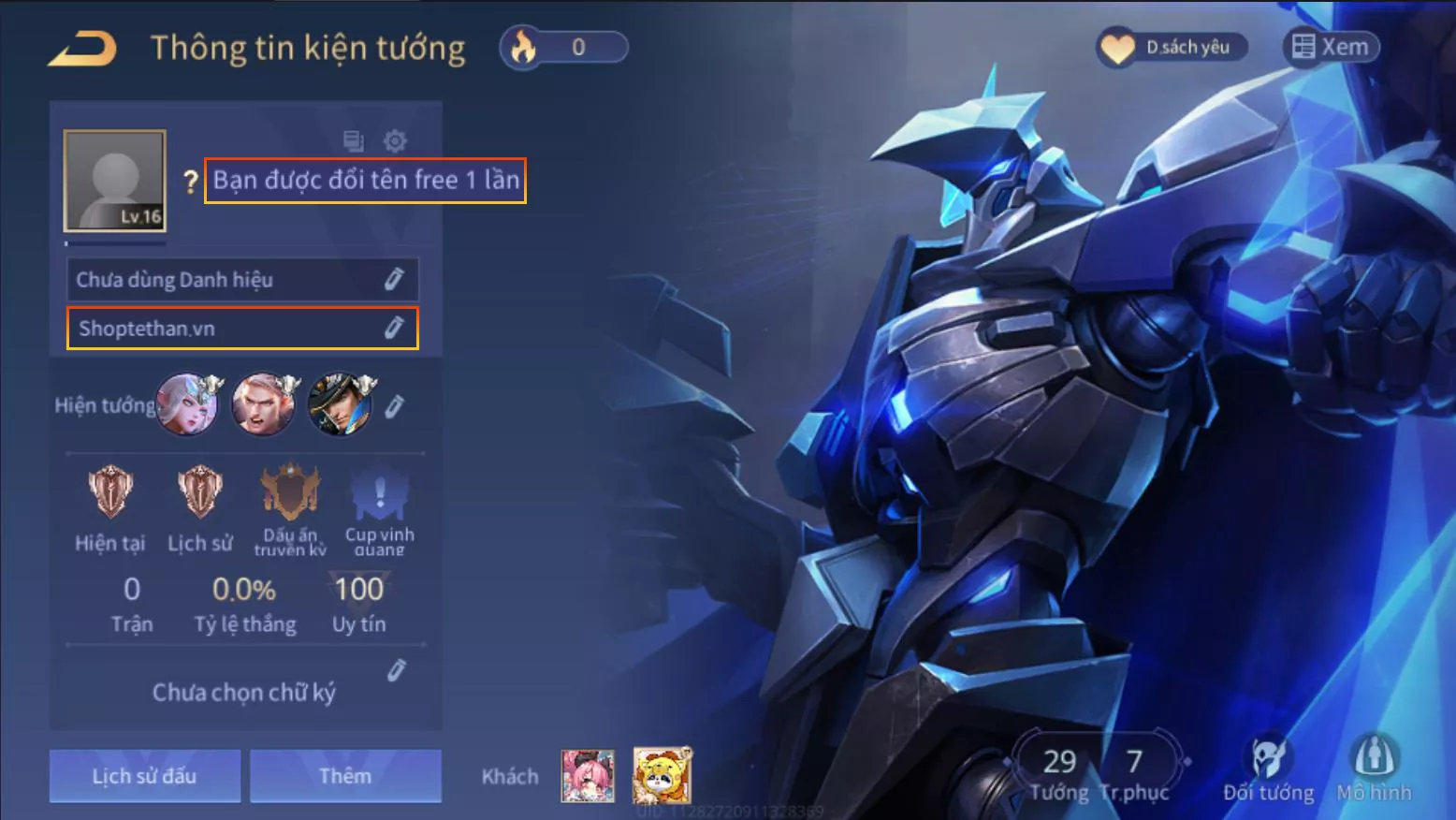 Acc #26485: Acc reg liên quân Elsu sứ giả tận thế, free đổi tên, trắng thông tin, giá 298,000 đ