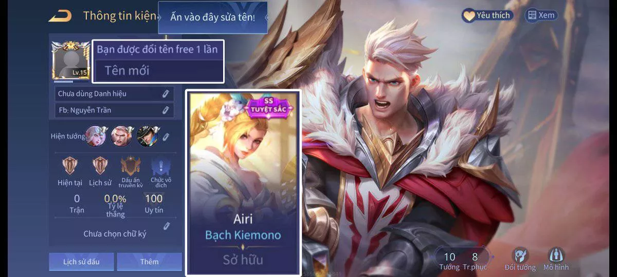 Acc #26531: Acc reg liên quân Airi tuyệt sắc, free đổi tên, trắng thông tin, giá 128,000 đ