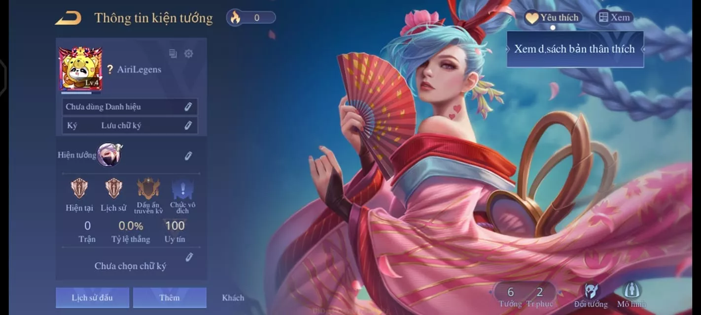 Acc #26910: Acc reg liên quân Airi kimono, free đổi tên, trắng thông tin, giá 58,000 đ