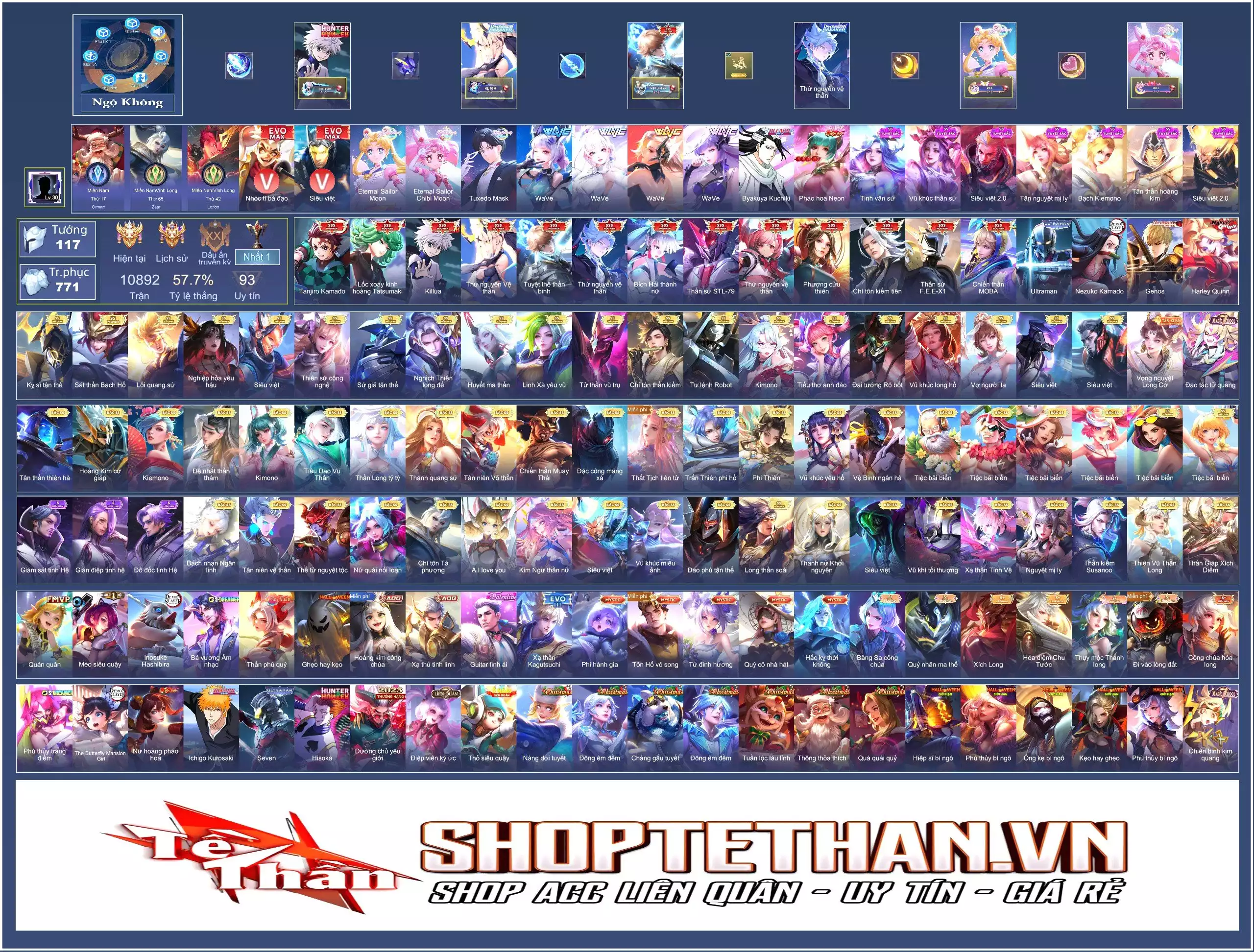 Loại acc | MUA ACC LIÊN QUÂN VIP: SKIN SSS, ANIME, CỤC VÀNG, MÁC THÁCH ĐẤU |