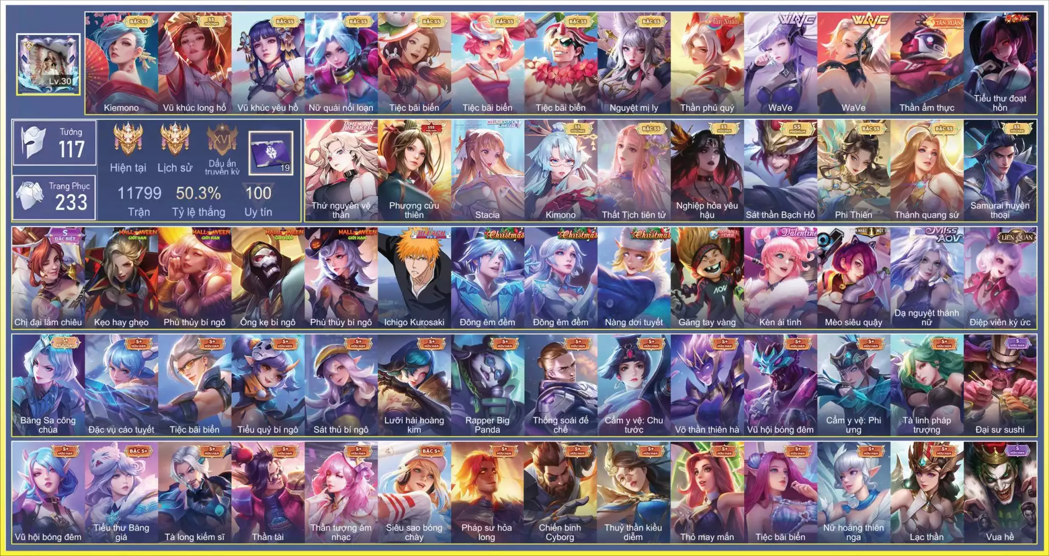 Loại acc | MUA ACC LIÊN QUÂN VIP: SKIN SSS, ANIME, CỤC VÀNG, MÁC THÁCH ĐẤU |